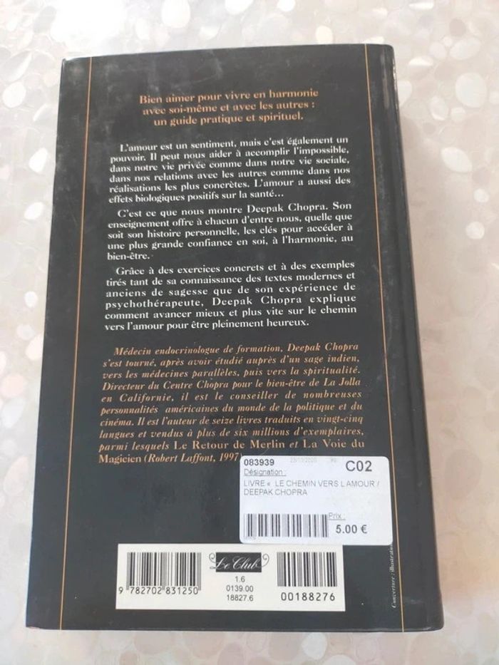 Le chemin vers l amour de deepak chopra Libre de suite Envoi possible à vos frais.