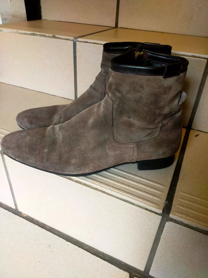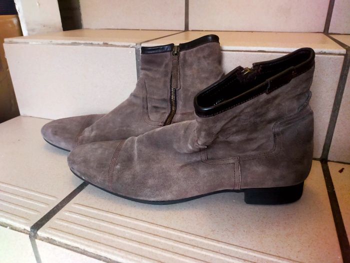 Bottines pour homme en cuir couleur taupe / marron pointure 43 marque original IKKS . Longueur semelle 30 cm et largeur 10 cm voir photos. Fermeture a glissière sur le côté. Excellente état libre de suite. Envoi possible a vos frais. Négociation possible raisonnablement ou lot. Autres annonces Zou251972.