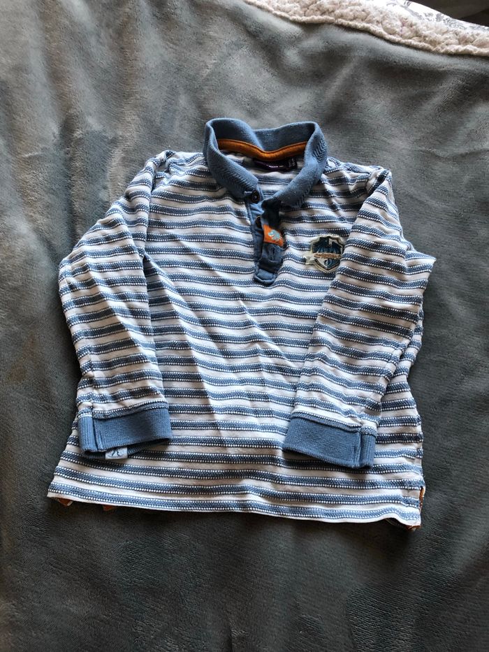 Haut à rayures blanches et bleues. Haut en très bon état. Taille 3 ans.