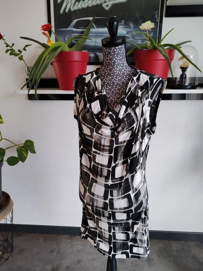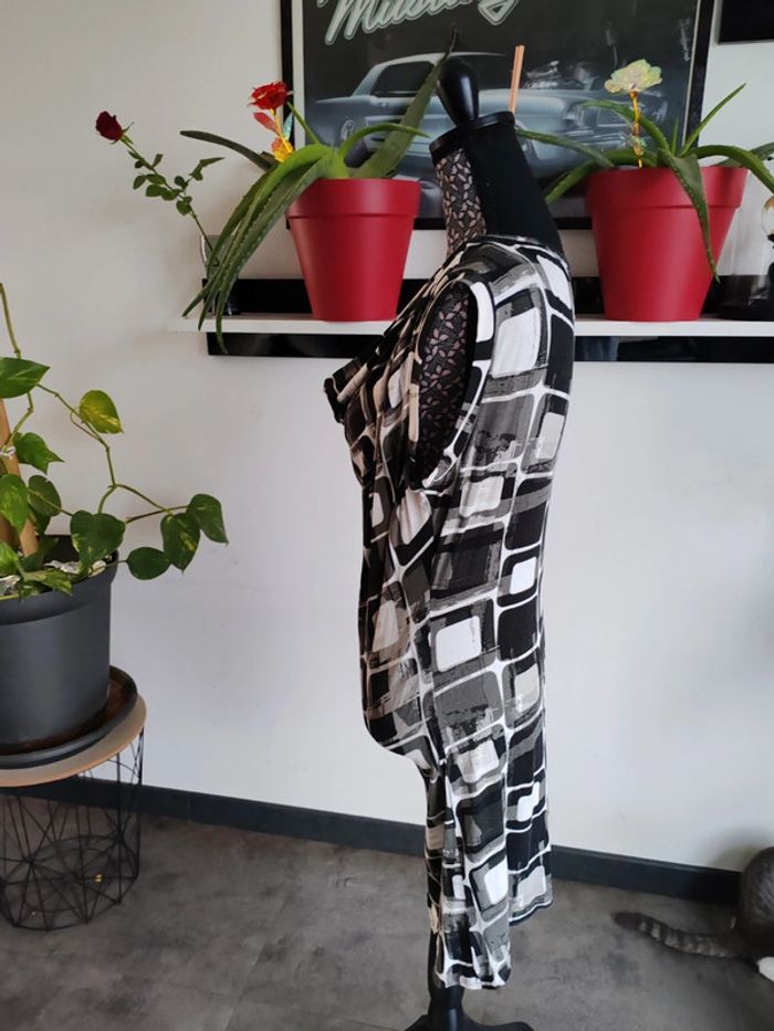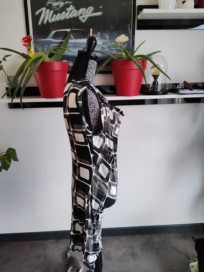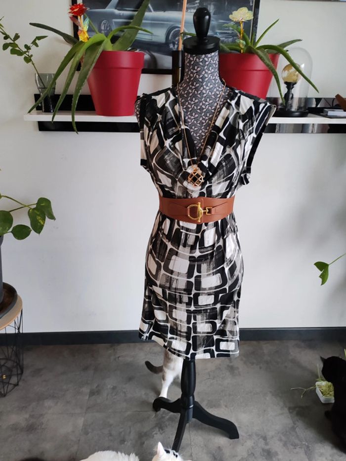 Robe fait main Midi Colle à la peau Col drapé Manches courtes À enfiler Vendue sans la ceinture