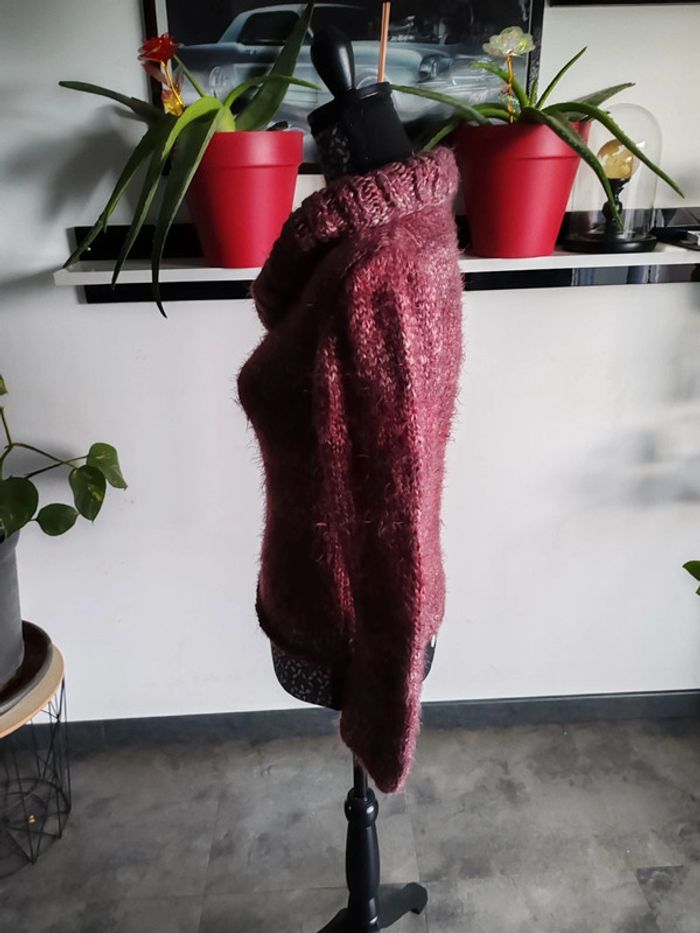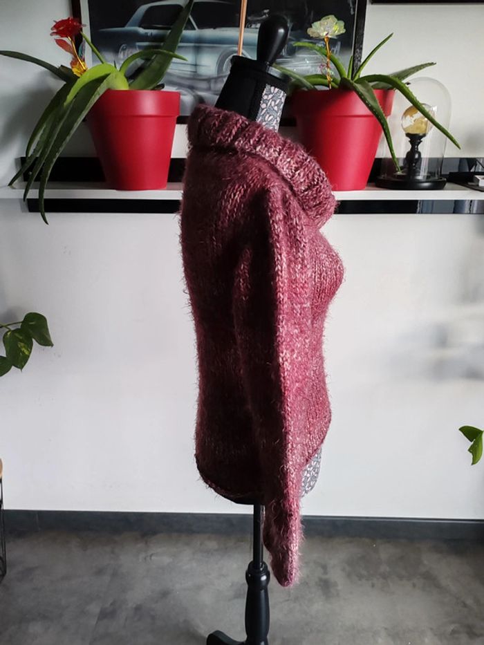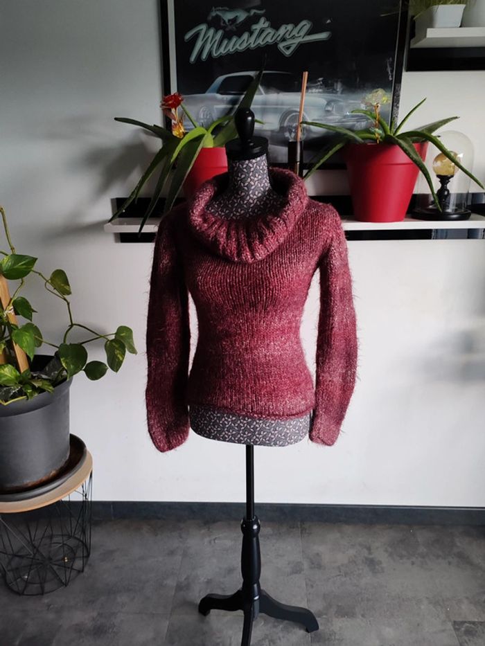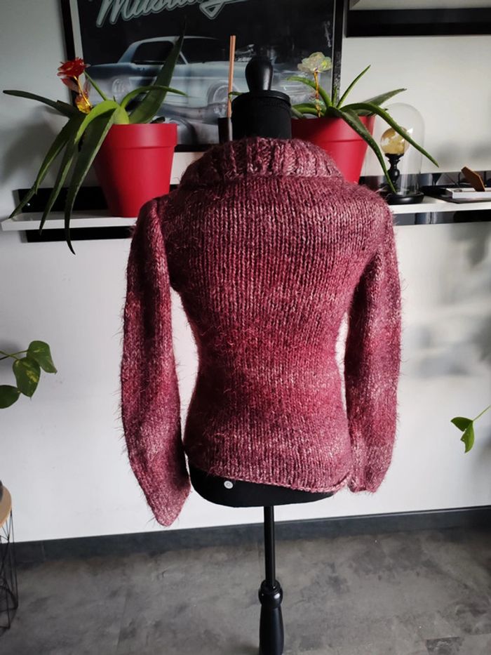 Pull en laine rose et blanc Petit col roulé Handmade Très chaud Hyper doux