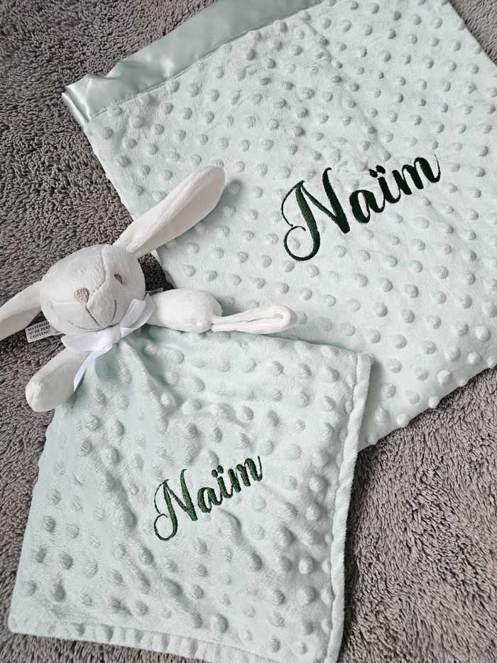 Doudou, couverture vert d'eau Personnalisé Prénom broder Écrit et couleur au choix
