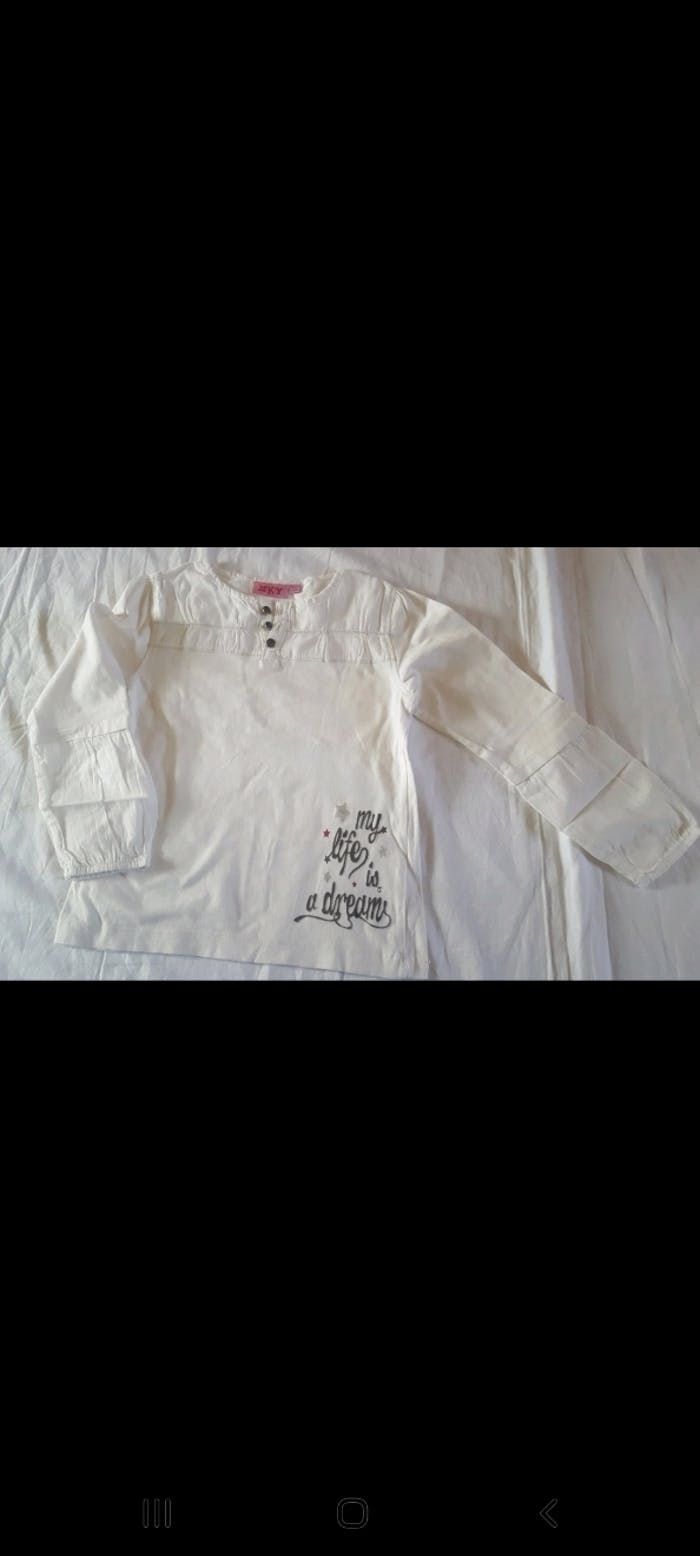 T-shirt manches longues blanc avec 3 petits boutons argent en 6 ans pour fille Idéal pour le printemps #machacha21fille6ans #fille6ans #tshirtfille6ans