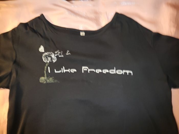 Mariniere coton noir t 44 I LIKE FREEDOM , tres bon etat , long 52 cm .larg poitrine 53 cm ( t 42/44 sur maillot)
