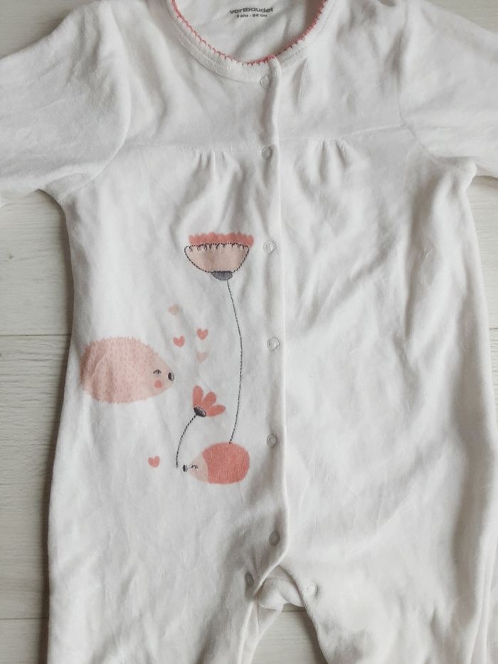 Vêtement fille pyjama velours blanc fleur Hérisson Vert Baudet 3 ans - photo numéro 3