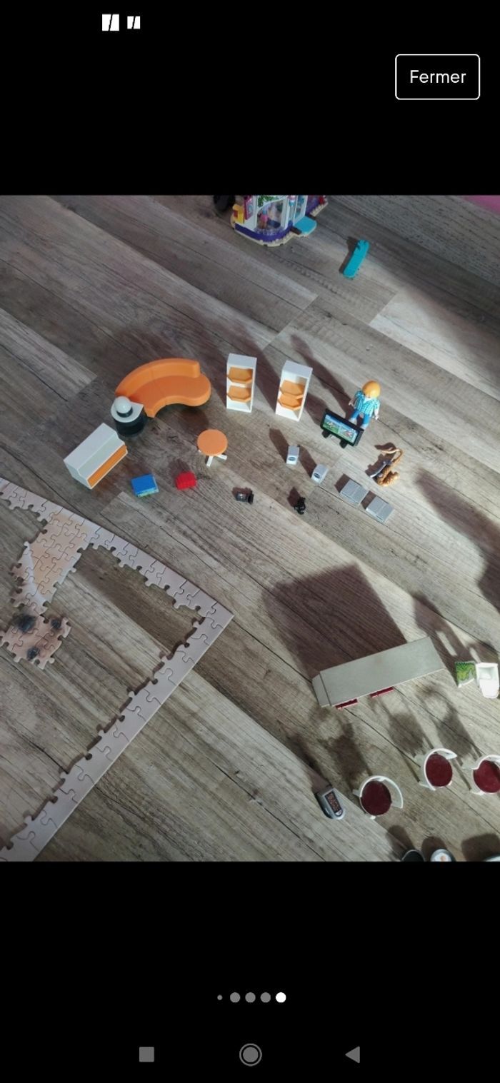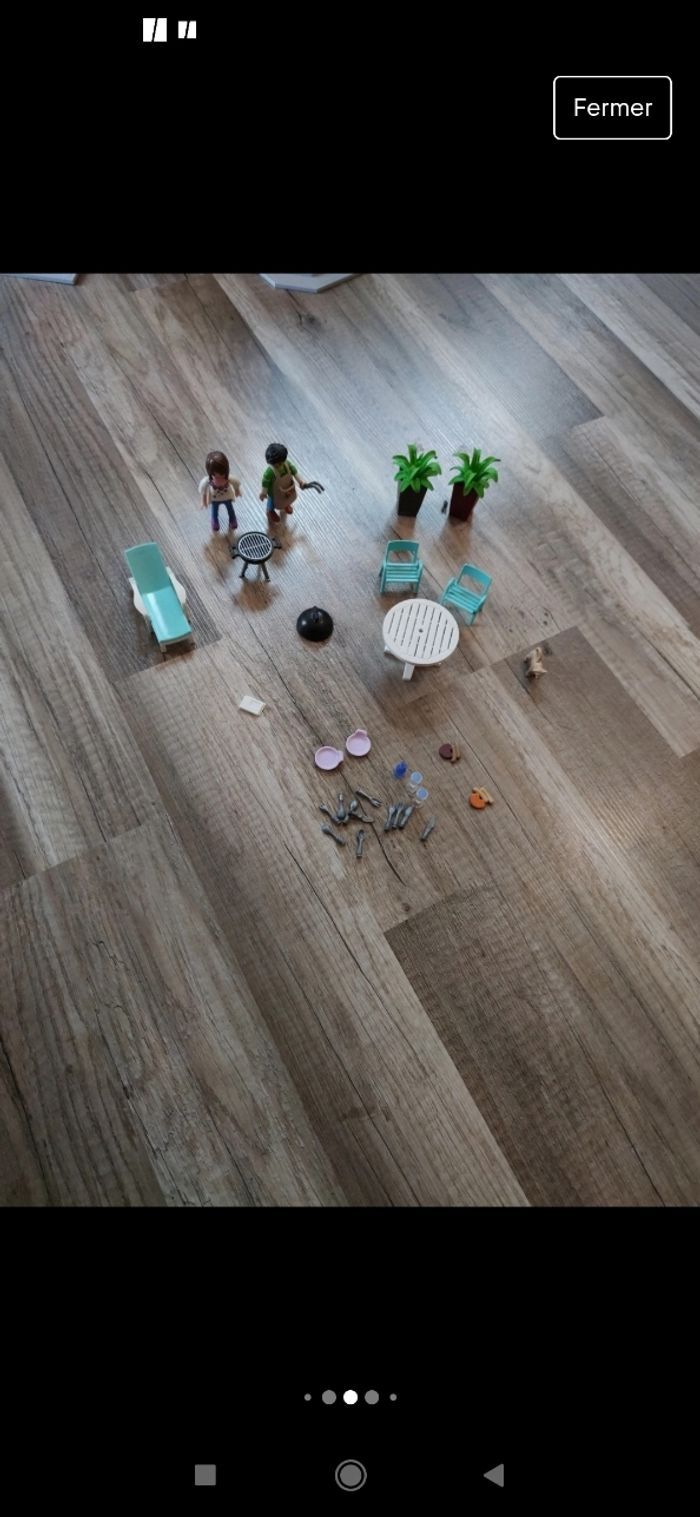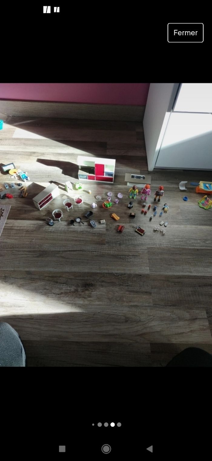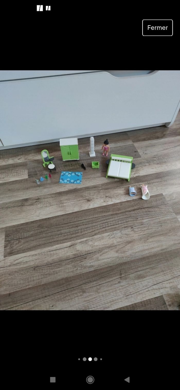 Vend la maison moderne Playmobil avec différentes pièces : cuisine aménagée, salon, salle de bain, chambre des parents, chambre enfant fille et chambre de bébé