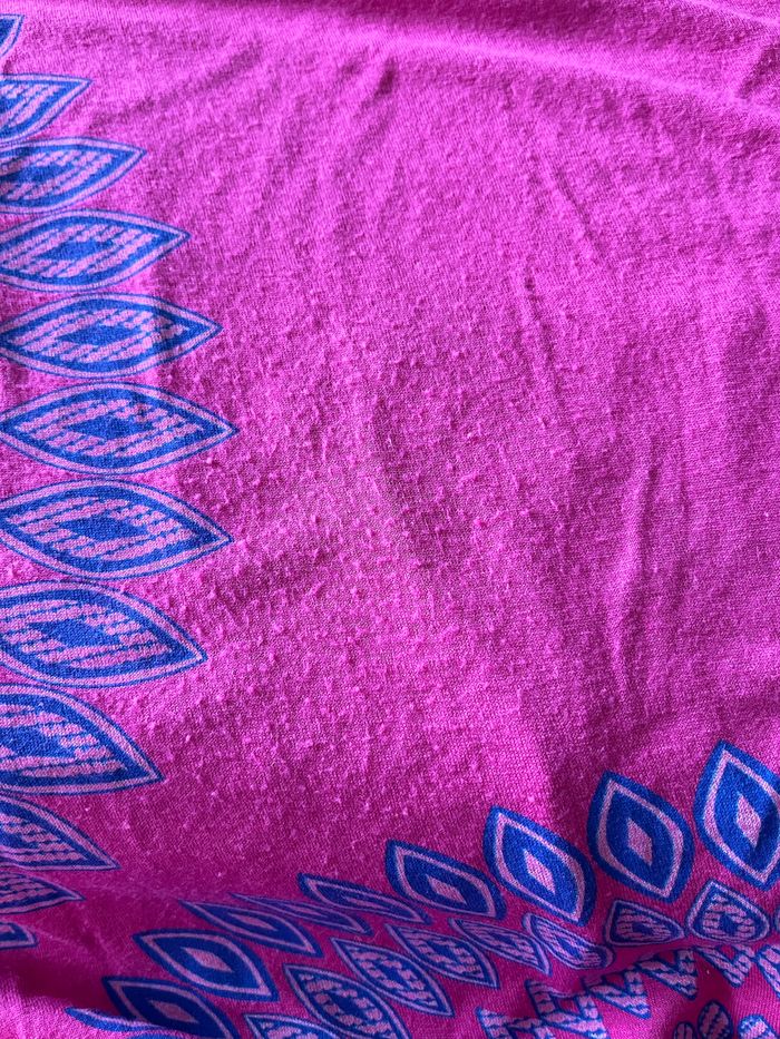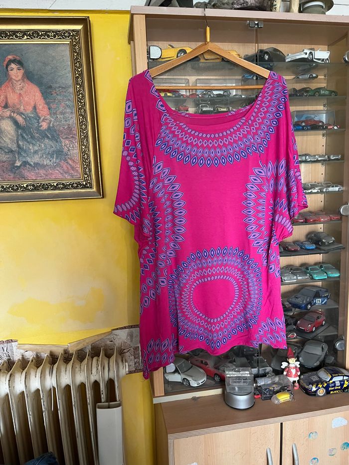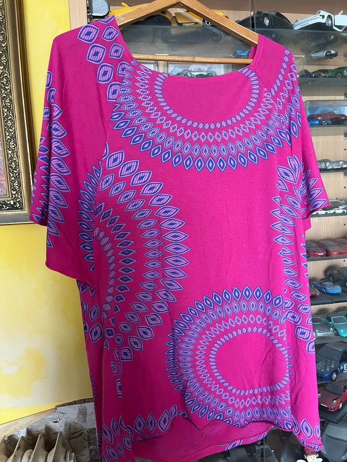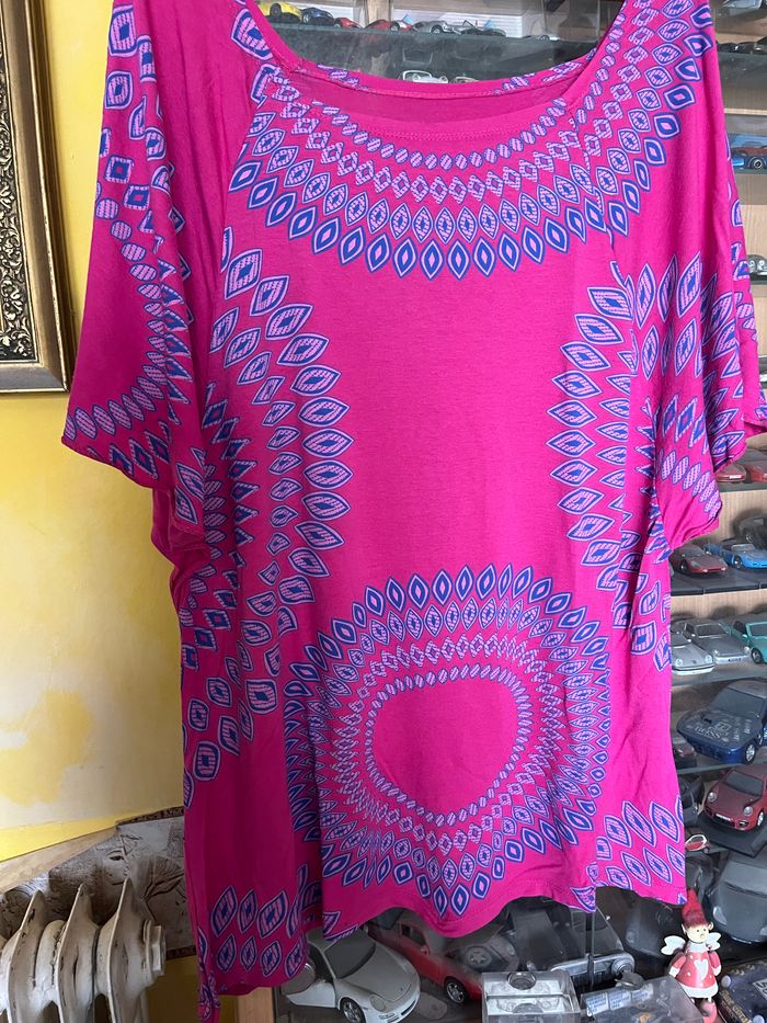 Haut femme taille unique pour grandes tailles fushia bariolé porté avec petites bouloches voir photo mais peu encore servir pas déchiré ni troué 95% viscose 5% Elasthanne