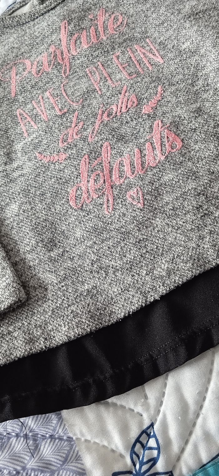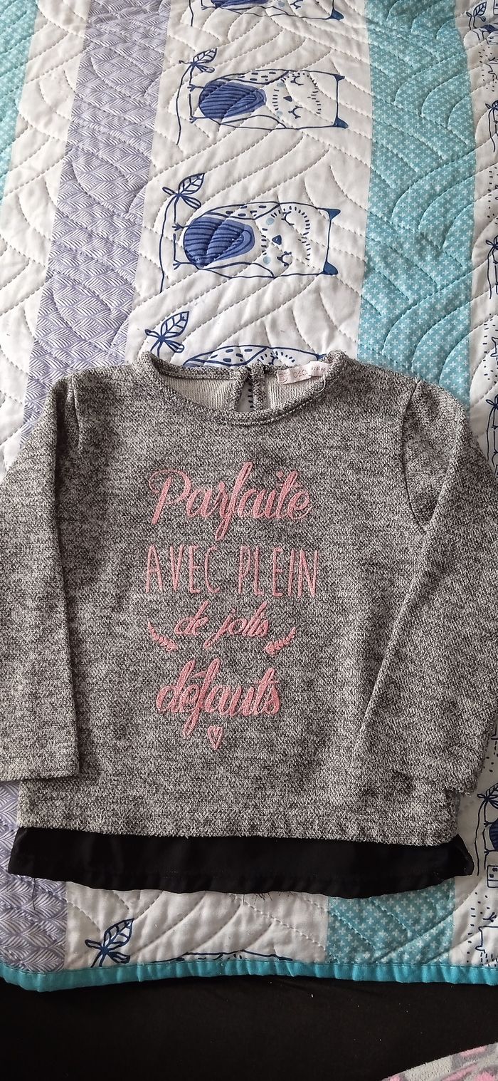 Sweat fille 18 mois en très bon état des écritures ne sont pas effacées non plus petit effet voile en dessous attache derrière avec petit élastique et bouton 1,50 €