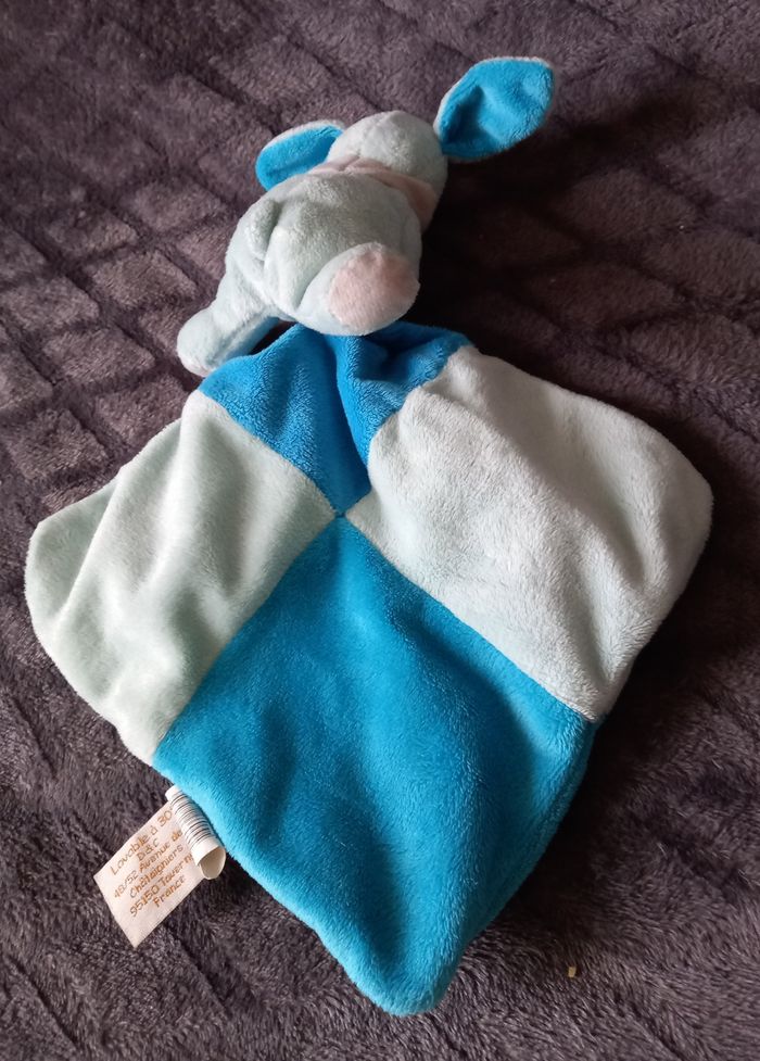 Doudou peluche lapin bleu - mouchoir luminescents poisson - Baby Nat - photo numéro 1