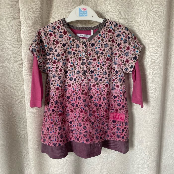 Robe doublée , dégradée de rose fleuri 6 mois Ikks