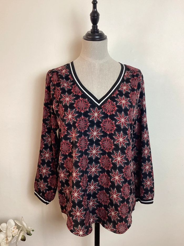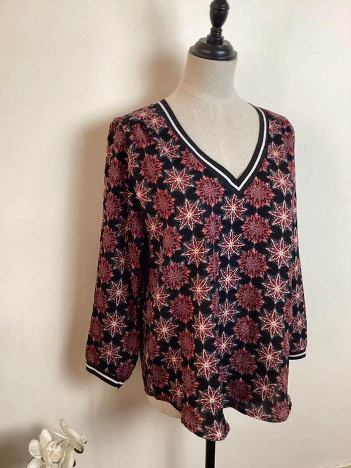 Blouse fluide noire à motifs rouges et blancs Largeur d’aisselle à aisselle : 48 cms Longueur totale : 62 cms #blousefemme38 #femme38 #hautfemme38 #blouseamotifs38 #blousefluide38 #blouse38 #blousenoemieandco38 #noemieetco38 #blousenoire38 #carole1996 #teametco