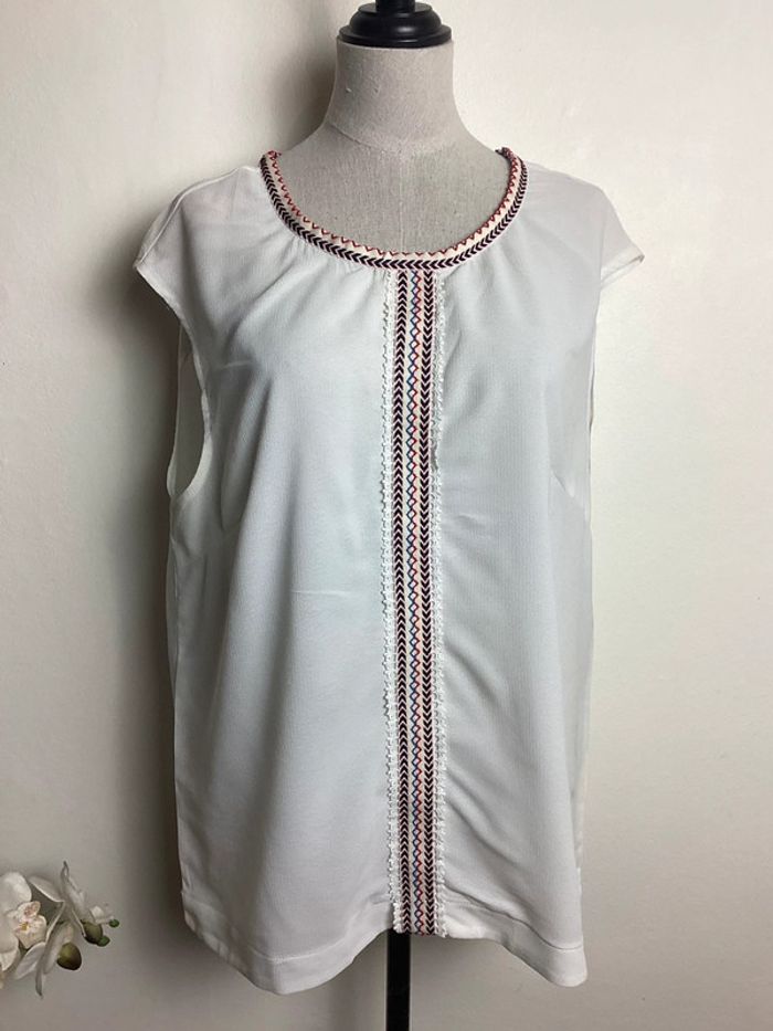 Blouse fluide écrue avec broderies bleues et rouge Largeur d’aisselle à aisselle : 50 cms Longueur totale : 64 cms #mollybracken40 #blousemollybracken40 #mollybrackenfemme40 #blouseete40 #blousefemme40 #hautfemme40 #femme40ete #étéfemme40 #femme40 #blousefluide40 #blouseecrue40 #blouse40 #carole1996 #teametco