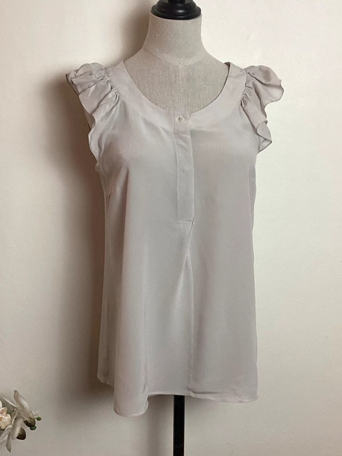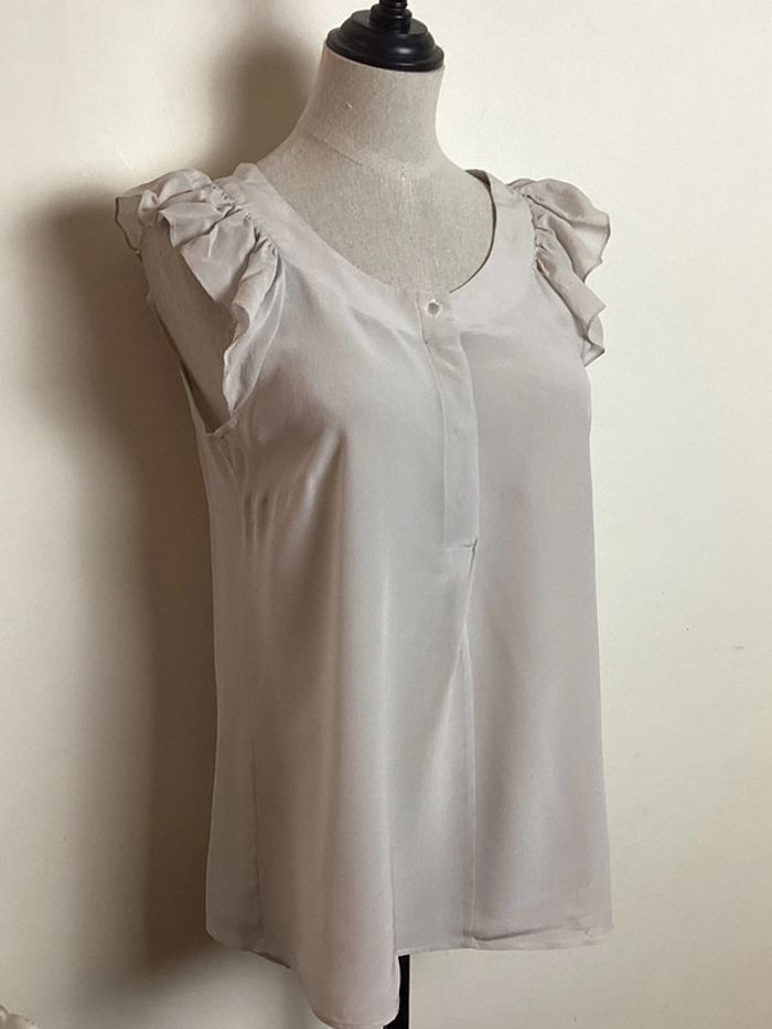 Blouse fluide écrue avec volant aux manches et boutons sur le devant 100% soie Largeur d’aisselle à aisselle: 42 cms Longueur totale: 57 cms #blousefemme36 #blouse36 #hautfemme36 #femme36ete #etefemme36 #femme36 #blouseecrue36 #blousecaroll36 #carollfemme36 #caroll36 #blousefluide36 #carole1996 #teametco #blouseensoie36
