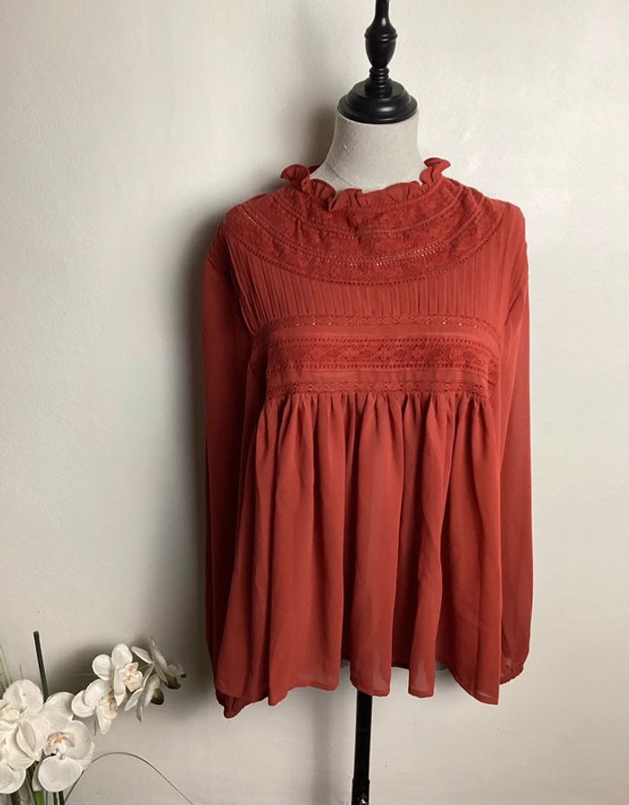 Blouse rouille avec broderies Amisu 34 - photo numéro 1