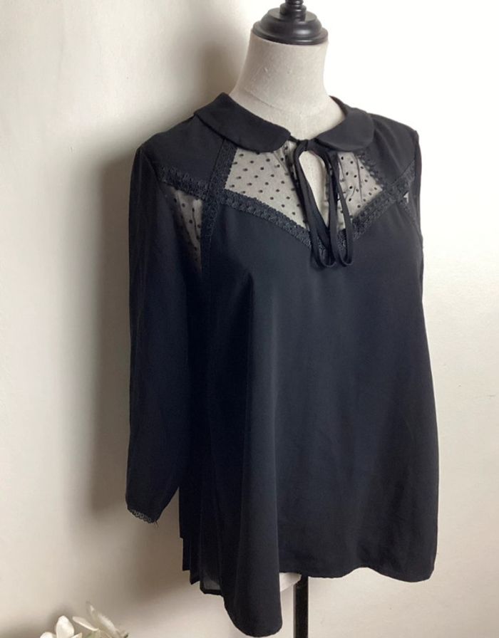 Blouse noire avec dentelle et broderies Manches 3/4, col arrondi et noeud Plissée dans le dos Largeur d’aisselle à aisselle : 44 cms Longueur totale : 60 cms #blousenoire36 #blousefemme36 #femme36 #blousebrodee36 #blousedentelle36 #blousegraceetmila36 #graceetmila 36 #hautfemme36 #blouse36 #carole1996 #teametco