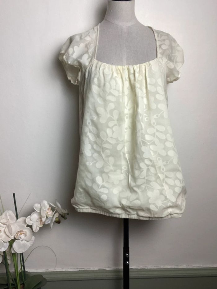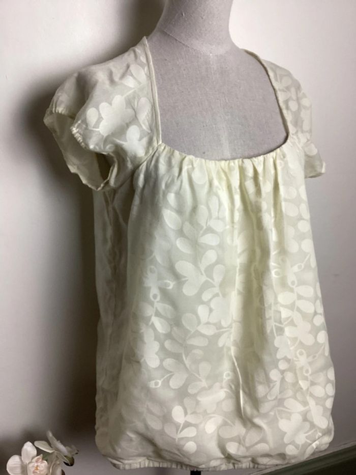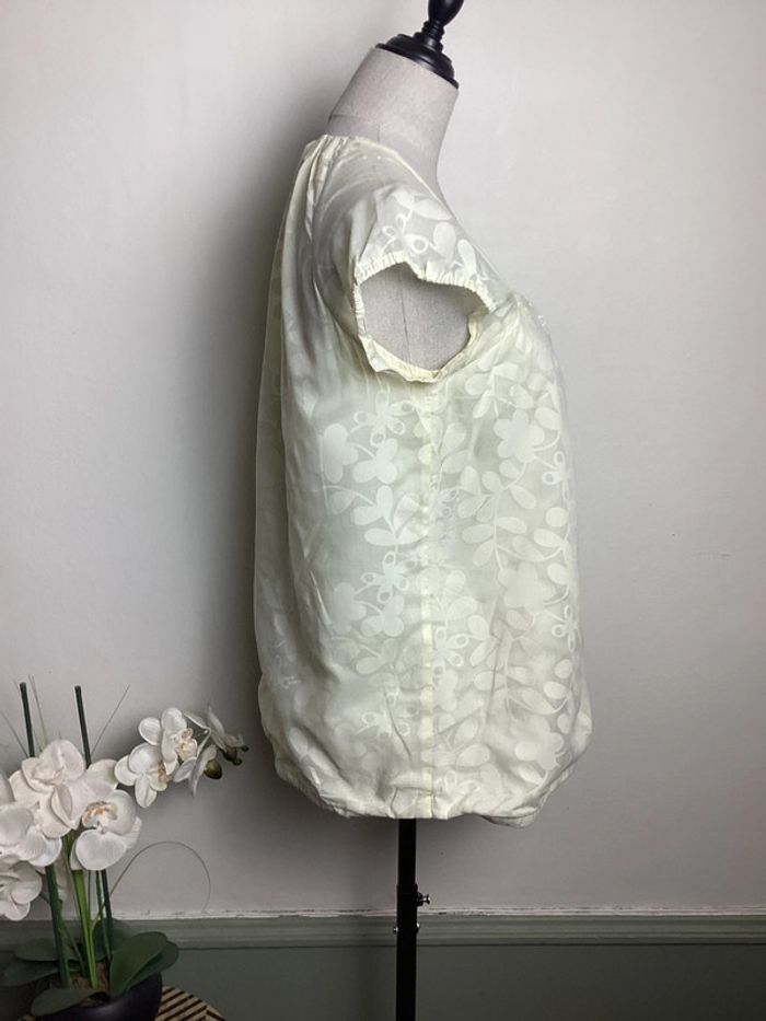 Blouse jaune pâle à motifs avec doublure Col carré Largeur d’aisselle à aisselle : 44 cms Longueur totale : 64 cms #blouseete38 #blousefemme38 #blousejaune38 #blouse38 #hautfemme38 #femme38ete #étéfemme38 #femme38 #blousekookai38 #kookaifemme38 #kookai38 #carole1996 #teametco