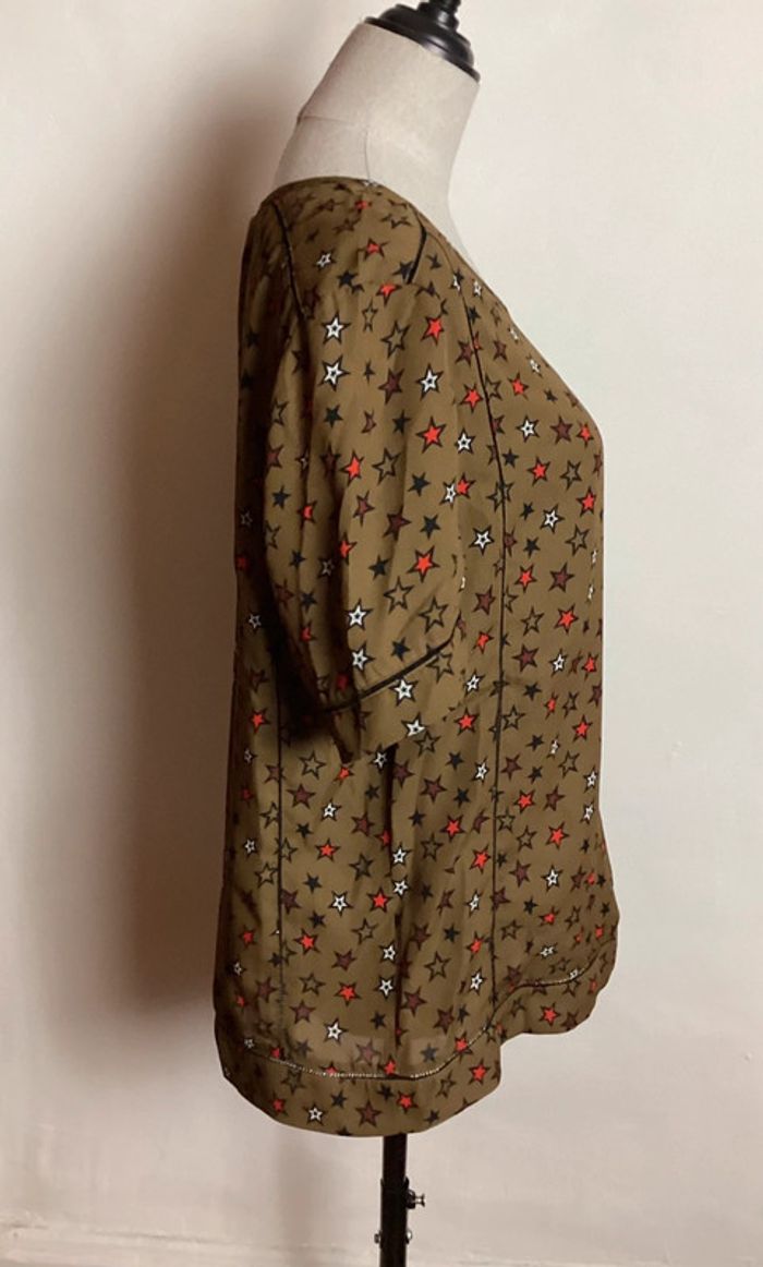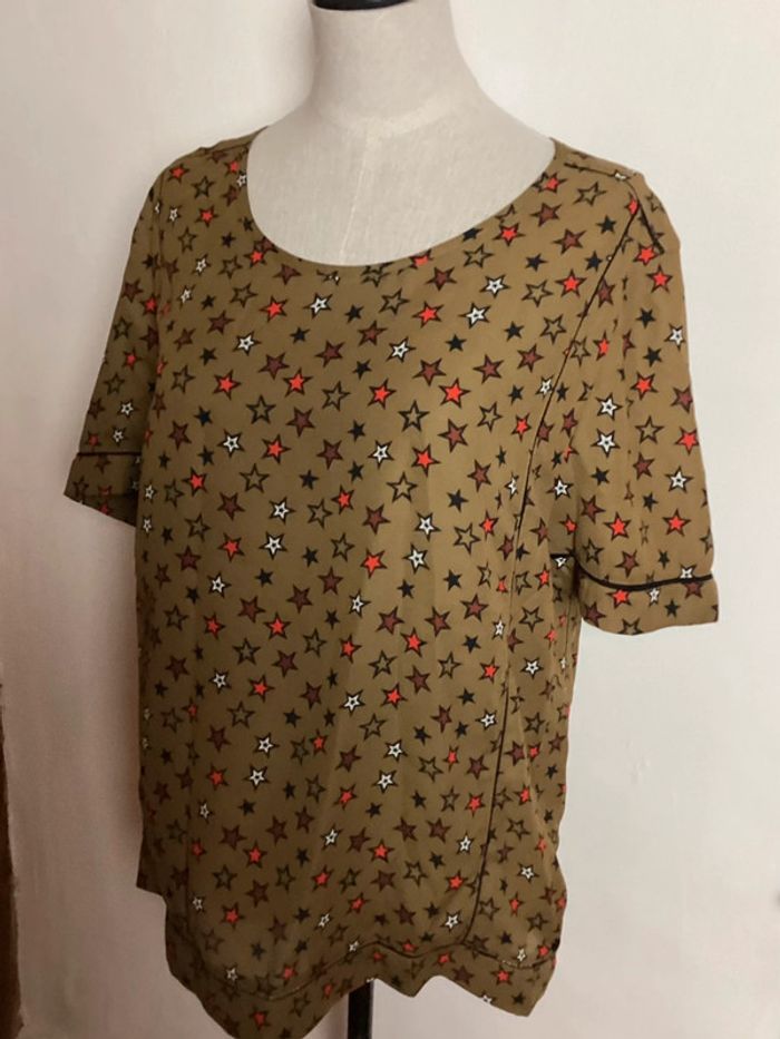 Blouse fluide kaki avec des étoiles et liserés noirs Longueur totale: 64 cms Largeur d’aisselle à aisselle: 50 cms #blousefemme38 #hautfemme38 #femme38 #blouseete38 #blouseamotifs38 #blousekaki38 #blouse38 #blousefluide38 #étéfemme38 #femme38ete #blousescotchandsoda38 #blousescotchetsoda38 #scotchandsoda38 #scotchandsodafemme38 #carole1996 #teametco