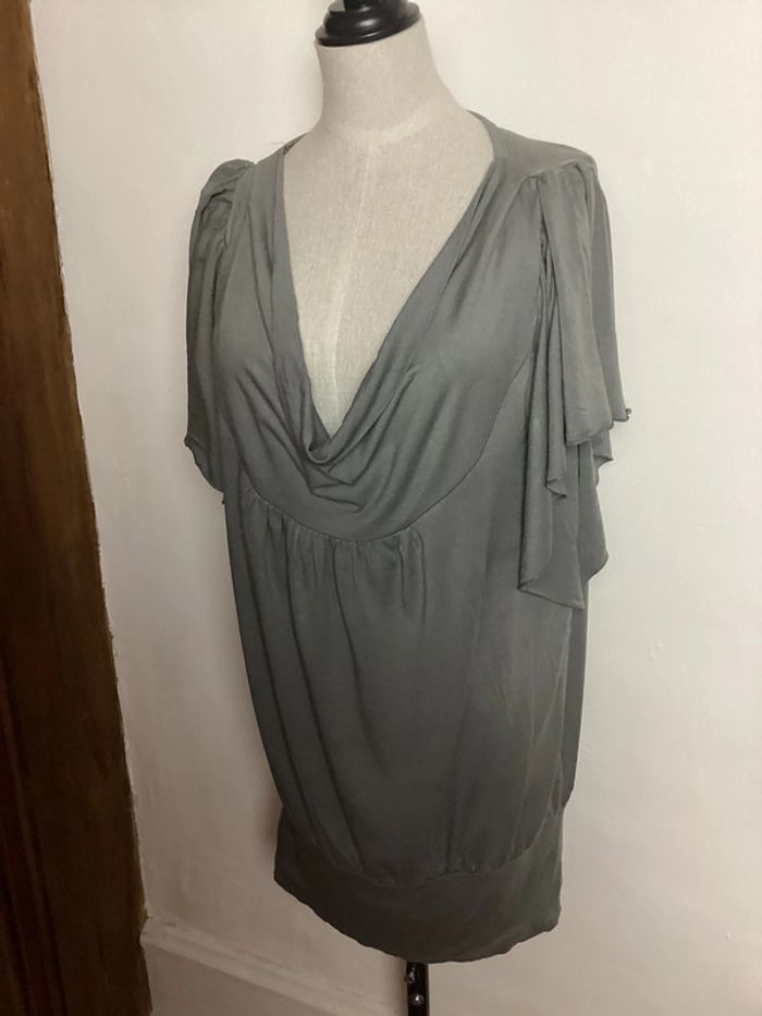 Blouse grise avec décolleté et manches évasées Longueur totale : 73 cms Largeur d’aisselle à aisselle : 44 cms #morganfemme40 #blousemorgan40 #morgan40 #femme40 #hautfemme40 #etefemme40 #femme40ete #blousefemme40 #blouse40 #blousegrise40 #blousefluide40 #blouseete40 #carole1996 #teametco