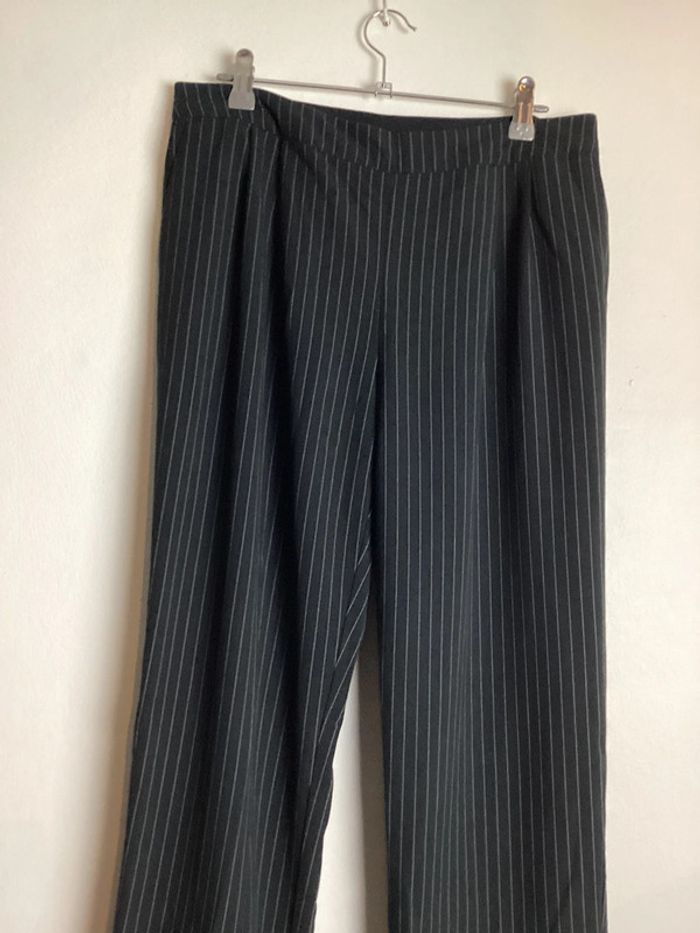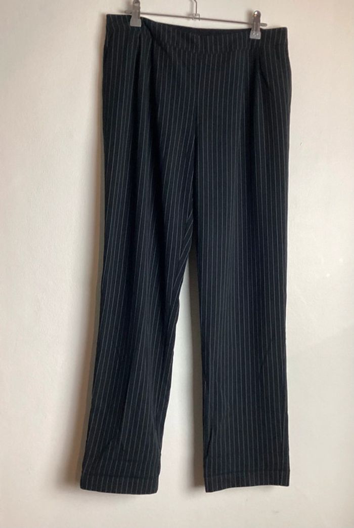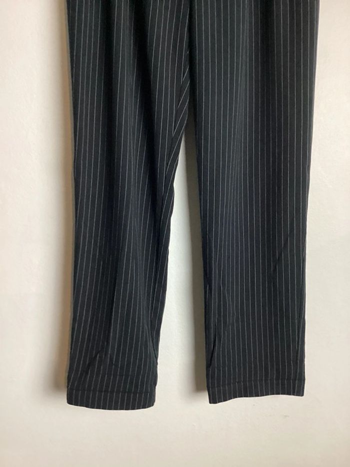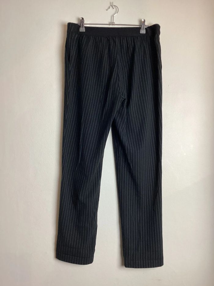 Pantalon noir à fines rayures blanches Coupe droite, poches et élastique à la taille Largeur de la taille : 40 cms Longueur totale : 98 cms #pantalonfemme40 #femme40 #basfemme40 #pantalonarayures40 #pantalon40 #pantalonnoirfemme40 #pantalonnoir40 #pantaloncoupedroite40 #carole1996 #teametco