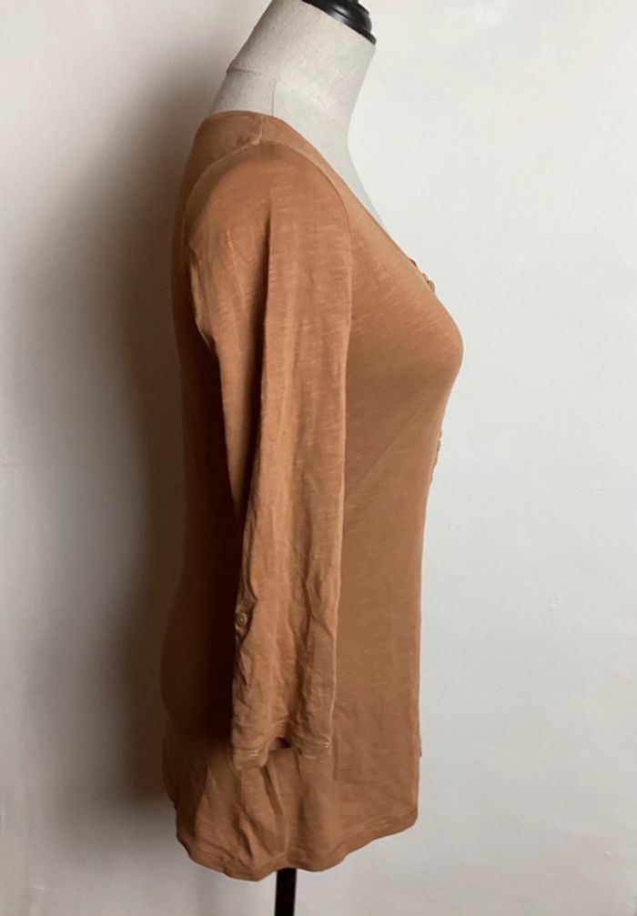 Teeshirt beige à manches 3/4 avec bouton pour les remonter Col arrondi avec boutons sur le devant Longueur totale : 60 cms Largeur d’aisselle à aisselle : 40 cms #pimkie34 #pimkiefemme34 #hautfemme34 #femme34 #teeshirtfemme34 #teeshirt34 #teeshirtbeige34 #teeshirtpimkie34 #carole1996 #teametco