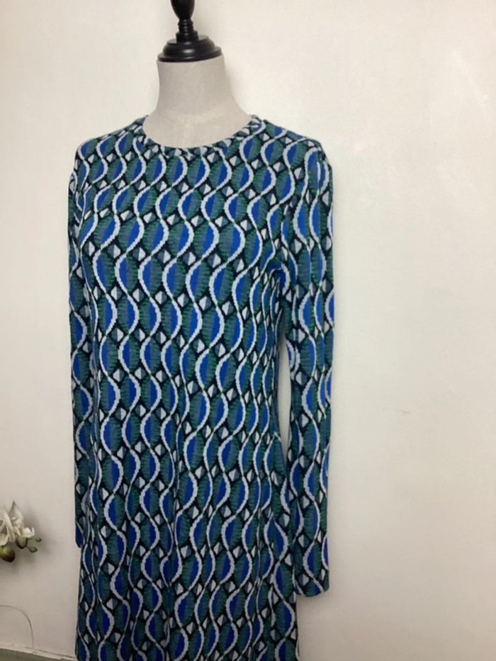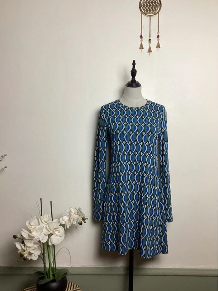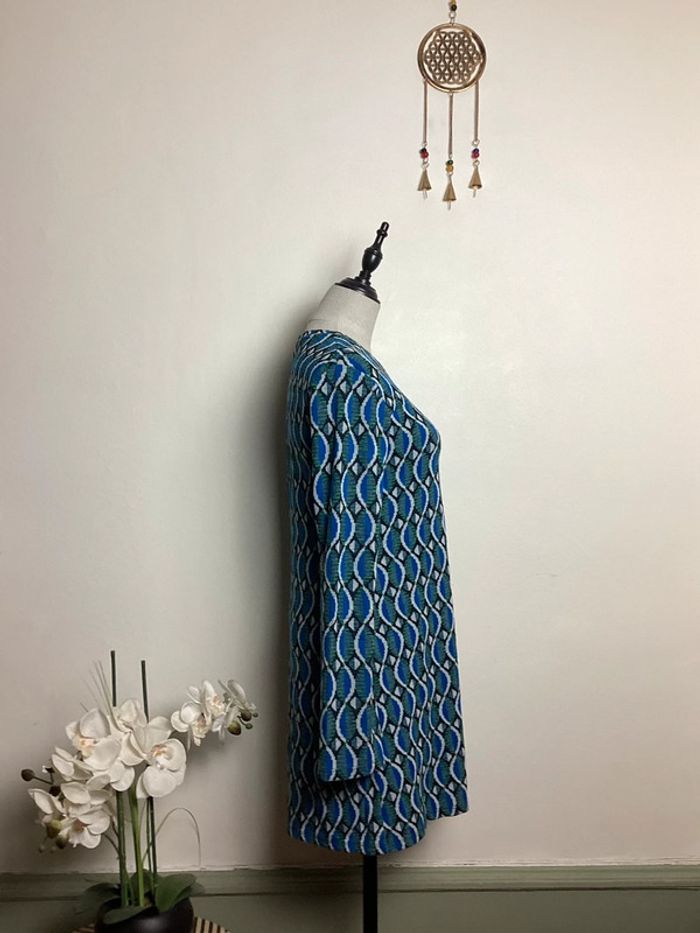 Robe à motifs dans les tons vert, bleu, noir et blanc Coupe droite et manches longues Longueur totale : 83 cms Largeur d’aisselle à aisselle : 42 cms #stradivariusfemme38 #stradivarius38 #robestradivarius38 #robefemme38 #femme38hiver #hiverfemme38 #femme38 #robehiver38 #robeamotifs38 #robe38 #robehiver38 #carole1996 #teametco #robebleueetverte