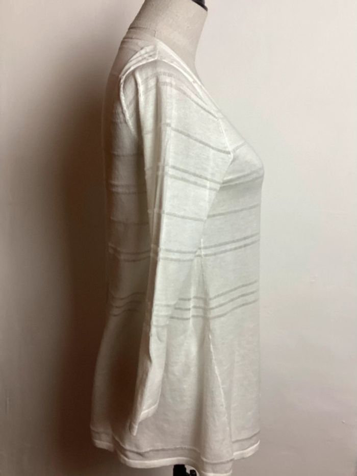 Pull fin de couleur blanche Manches 3/4, décolleté avec boutons Longueur totale : 63 cms Largeur d’aisselle à aisselle : 40 cms #pullkookai36 #kookai36 #kookaifemme36 #hautfemme36 #femme36hiver #hiverfemme36 #femme36 #pullblanc36 #pullfemme36 #pull36 ##pullhiver36 #pulldecollete36 #carole1996 #teametco