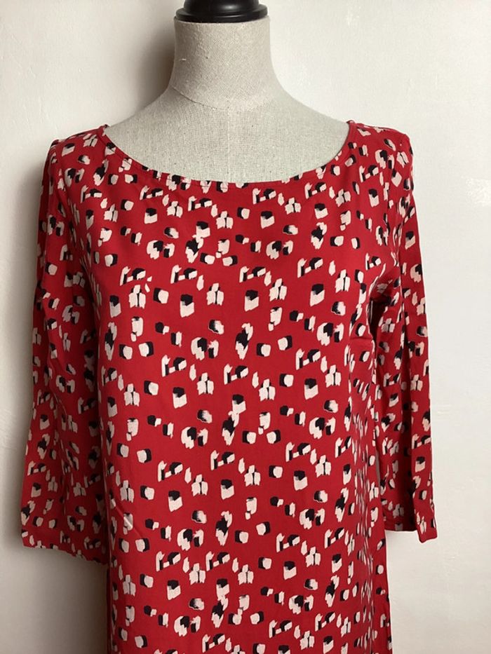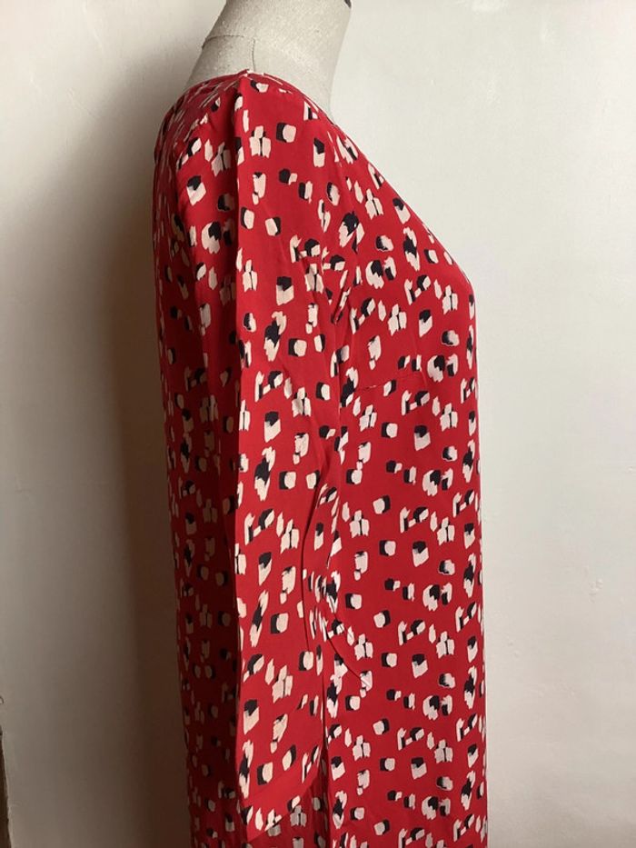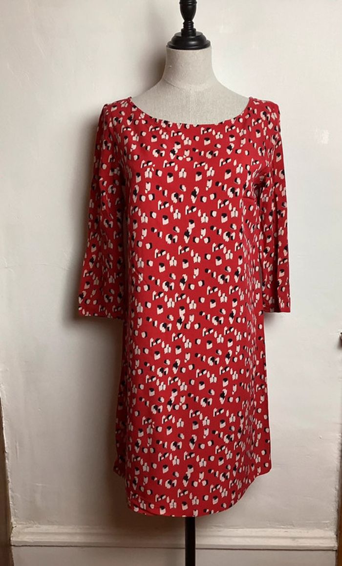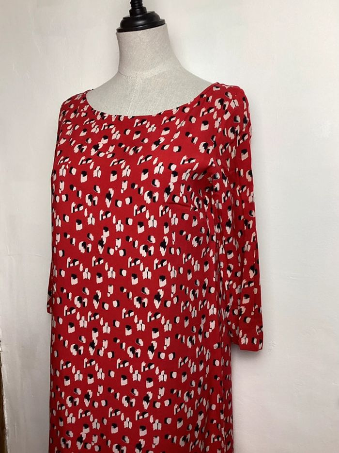 Robe de couleur rouge avec des motifs noirs et blancs Manches 3/4, coupe droite Longueur totale : 86 cms Largeur d’aisselle à aisselle : 45 cms #robemango38 #mangofemme38 #mango38 #femme38 #roberouge38 #robeamotifs38 #robecasual38 #femme38 #robe38 #femme38hiver #hiverfemme38 #robehiver38