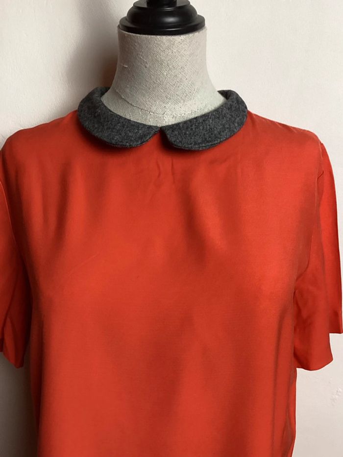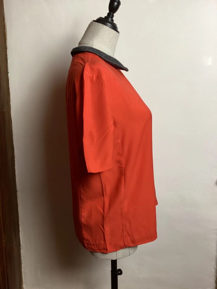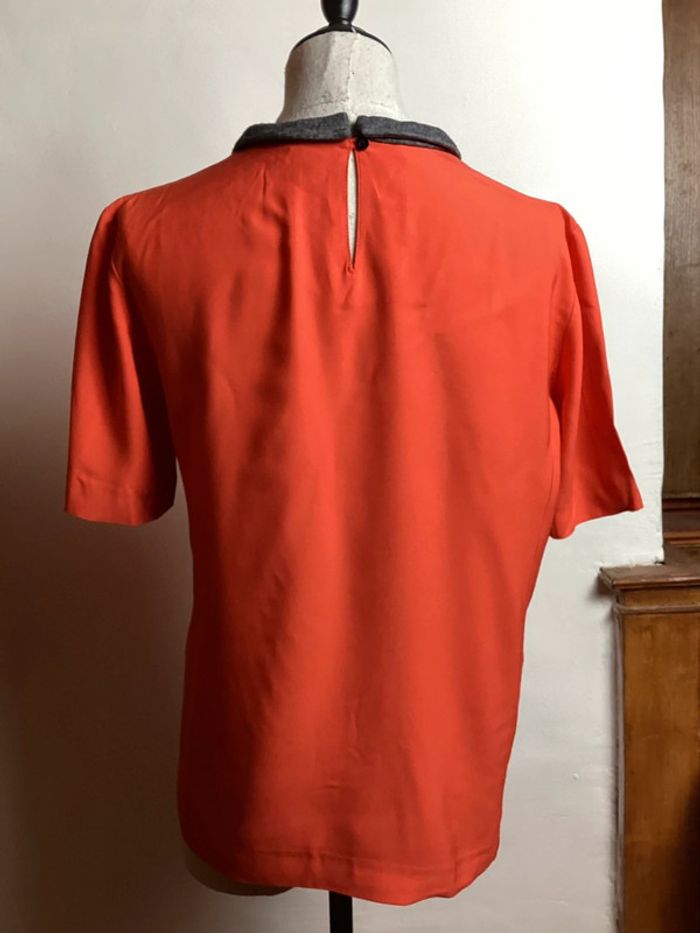 Blouse orange avec col arrondi gris Taille 1 correspond à un 36 Longueur totale : 58 cms Largeur d’aisselle à aisselle : 44 cms #blousefemme36 #blouseorange36 #majefemme36 #maje36 #blousemaje36 #blouse36 #hautfemme36 #femme36 #femme36hiver #hiverfemme36 #carole1996 #teametco