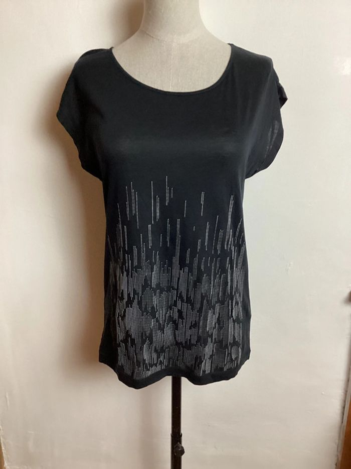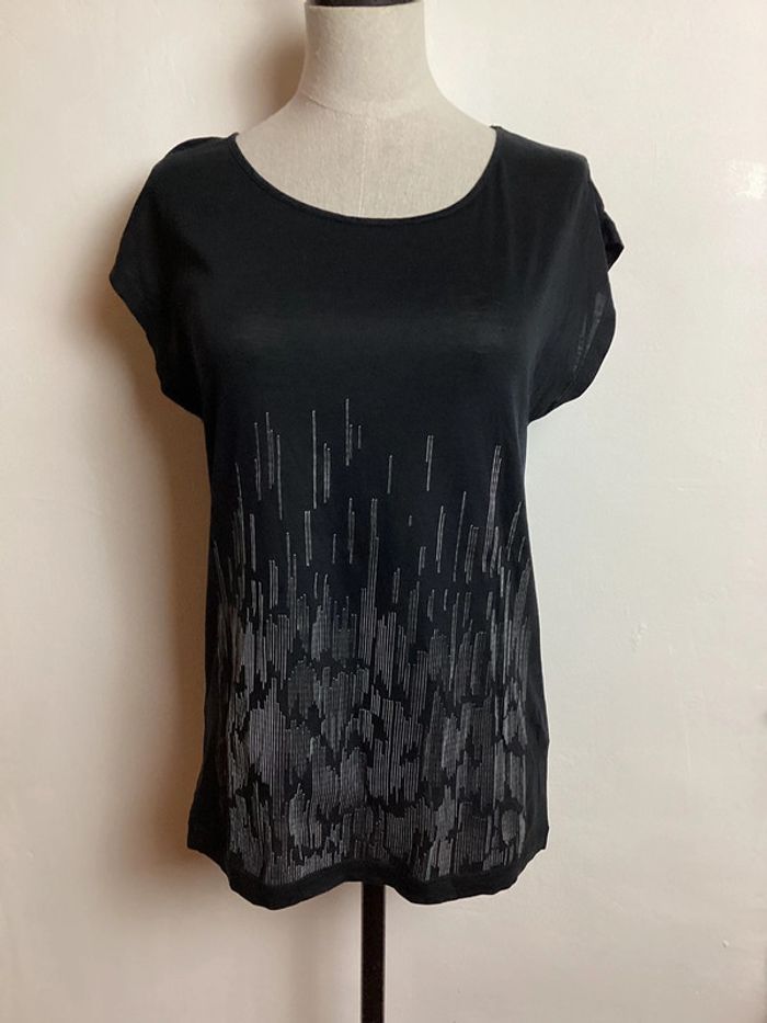 Teeshirt noir avec perles allongées de couleur grise Longueur totale : 60 cms Largeur d’aisselle à aisselle : 44 cms #femme38hiver #hiverfemme38 #hautfemme38 #femme38 #teeshirtfemme38 #teeshirt38 #teeshirtnoirfemme38 #teeshirtnoir38 #copcopine38 #teeshirtcopcopine38 #carole1996 #teametco