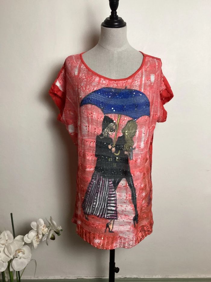 Teeshirt orange avec dessin Encobella 36 - photo numéro 1