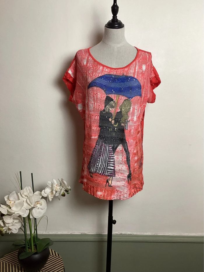 Teeshirt orange avec dessin sur le devant et dentelle dans le dos Largeur d’aisselle à aisselle : 54 cms Longueur totale : 65 cms #teeshirtfemme36 #hautfemme36 #femme36 #teeshirtorange36 #teeshirt36 #teeshirtavecsequins36 #teeshirtdentelle36 #teeshirtimprime36 #carole1996 #teametco