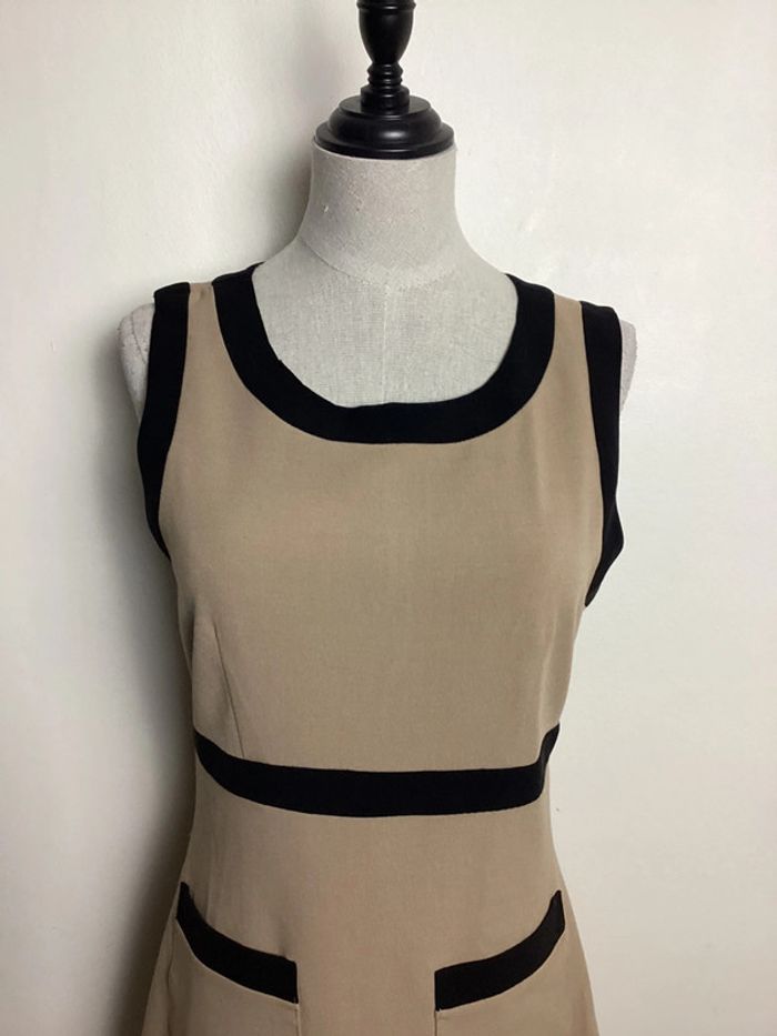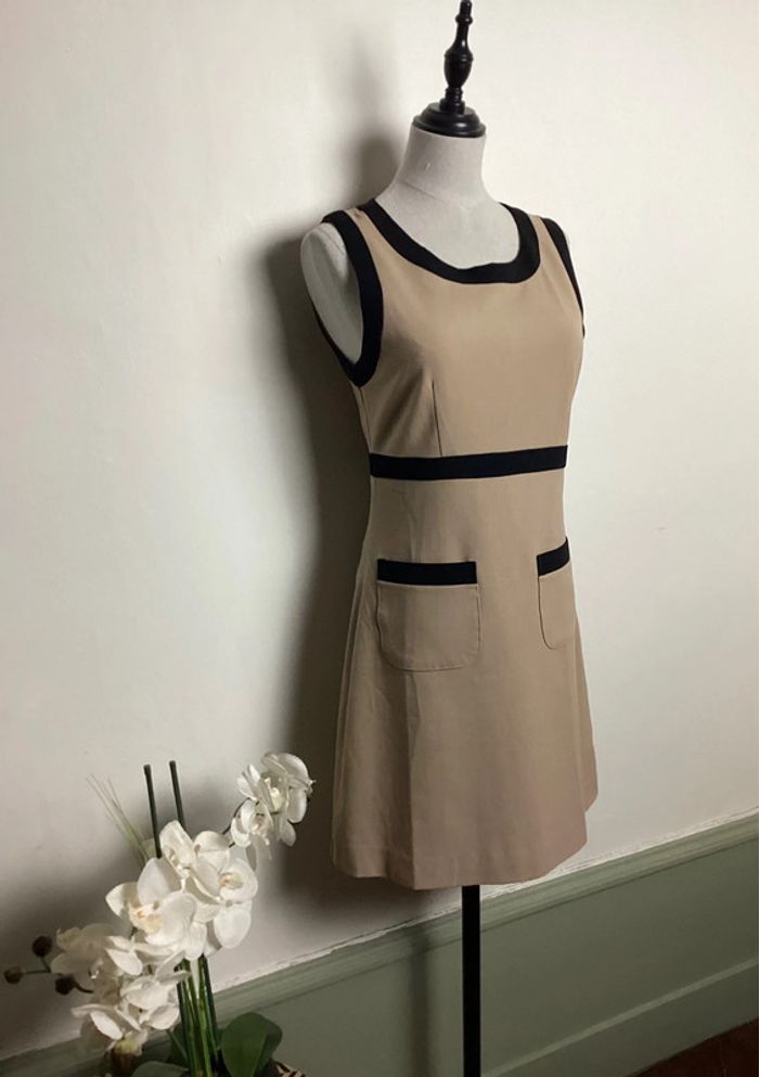 Robe beige avec des liserés noirs Col arrondi, cintrée à la taille, doublure et poches Fermeture éclair dans le dos Largeur d’aisselle à aisselle : 43 cms Longueur totale : 83 cms #robebeige36 #robefemme36 #robe36 #femme36 #forever2136 #robeforever2136 #robecasual36 #femme36hiver #hiverfemme36 #robehiver36 #carole1996 #teametco