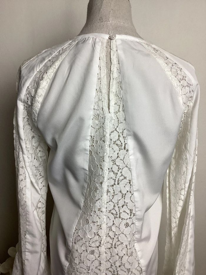 Blouse de couleur écrue avec dentelle sur le devant, dans le dos et aux manches Manches longues évasées Longueur d’aisselle à aisselle : 45 cms Longueur totale : 58 cms #blousefemme36 #hautfemme36 #femme36 #blouseecrue36 #hiverfemme36 #femme36hiver #blouseendentelle36 #nakd36 #blousenakd36 #bouse36 #carole1996 #teametco
