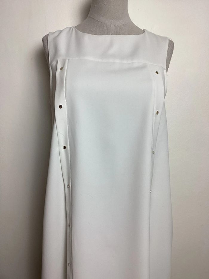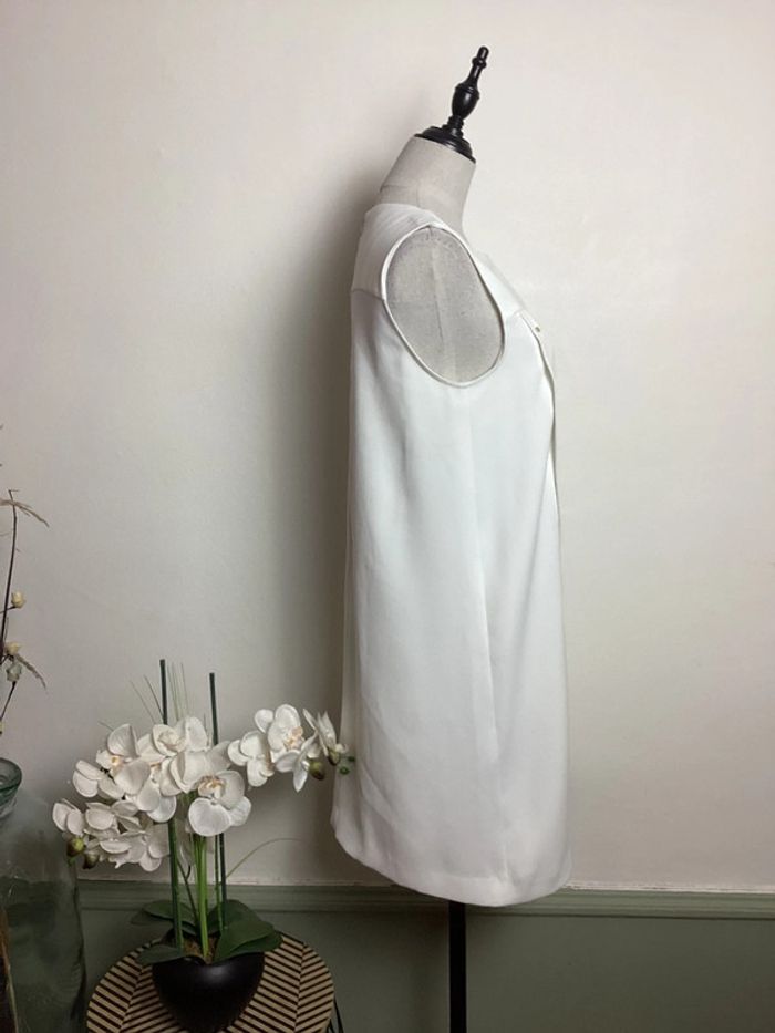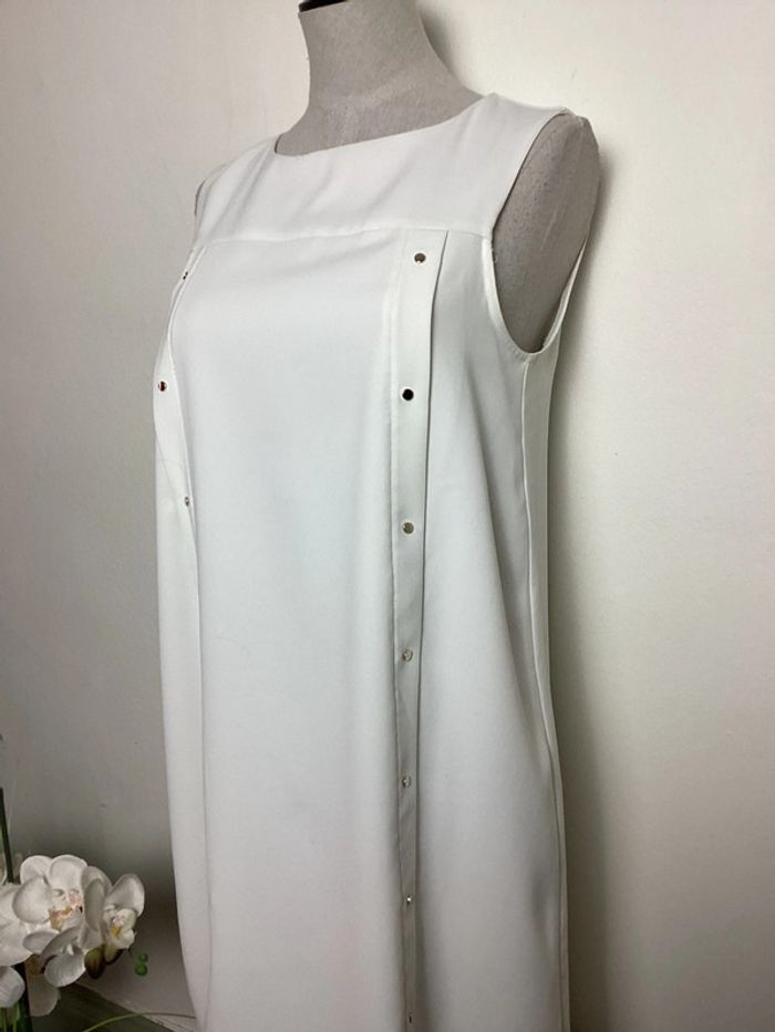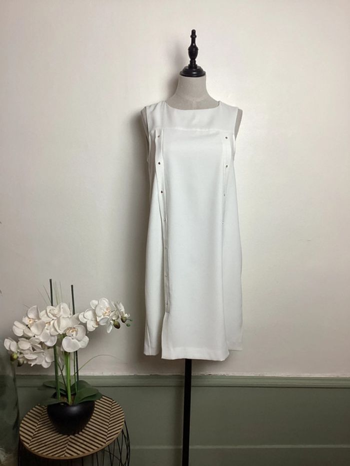 Robe blanche avec ornements dorés Coupe droite, doublure et petites fentes sur le devant Longueur totale : 85 cms Largeur d’aisselle à aisselle : 44 cms #robeblanche38 #robezara38 #zarafemme38 #zara38 #robecasual38 #robefemme38 #robe38 #carole1996 #teametco