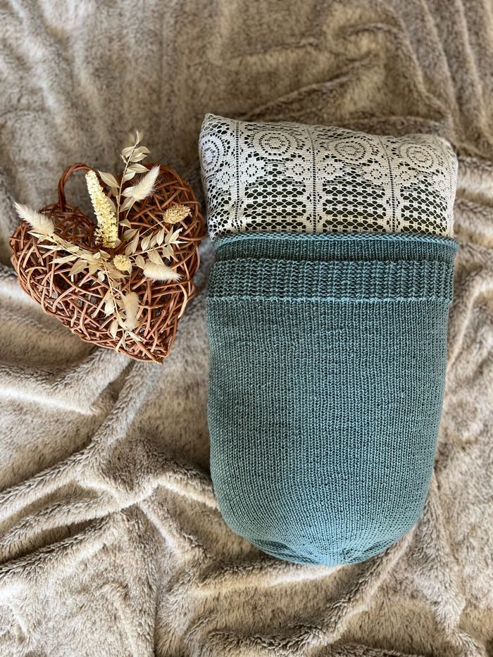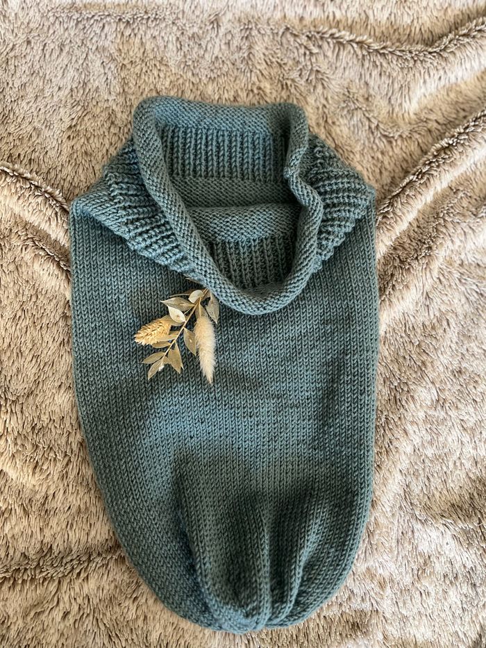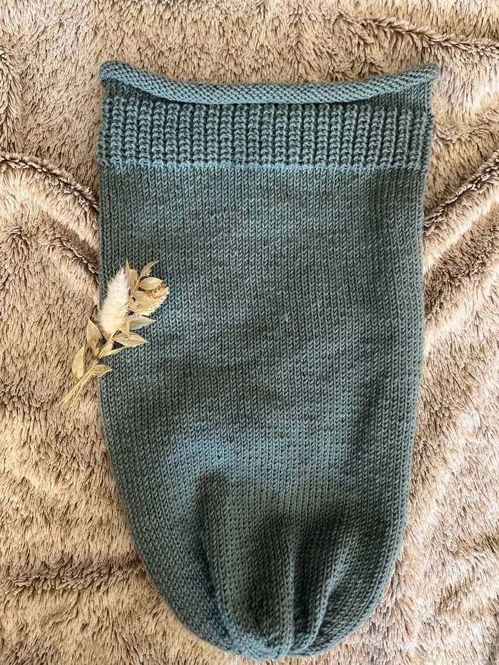 Cocon de naissance tricoté mains , laine eco-tex, laine merino thermo régulatrice, et super wash En résumé : c’est une laine non transpirante, sans colorants chimiques et qui se lave et sèche facilement ☺️ D’autres couleurs sont disponibles