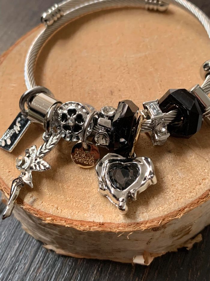 Bracelet jonc en acier inoxydable. Cœur, fée, palette, pierre. Couleur : Argentée, noire. Vous souhaitez acheter en lot ? veuillez m'envoyer un message et je vous ferez une vente. Envoi rapide et soigné.