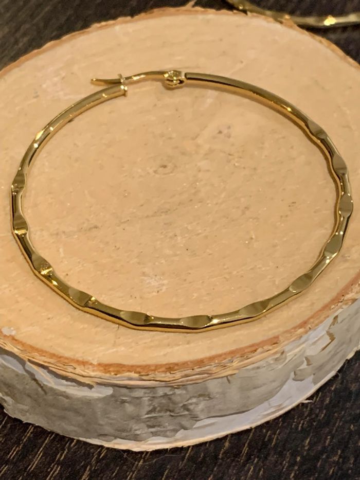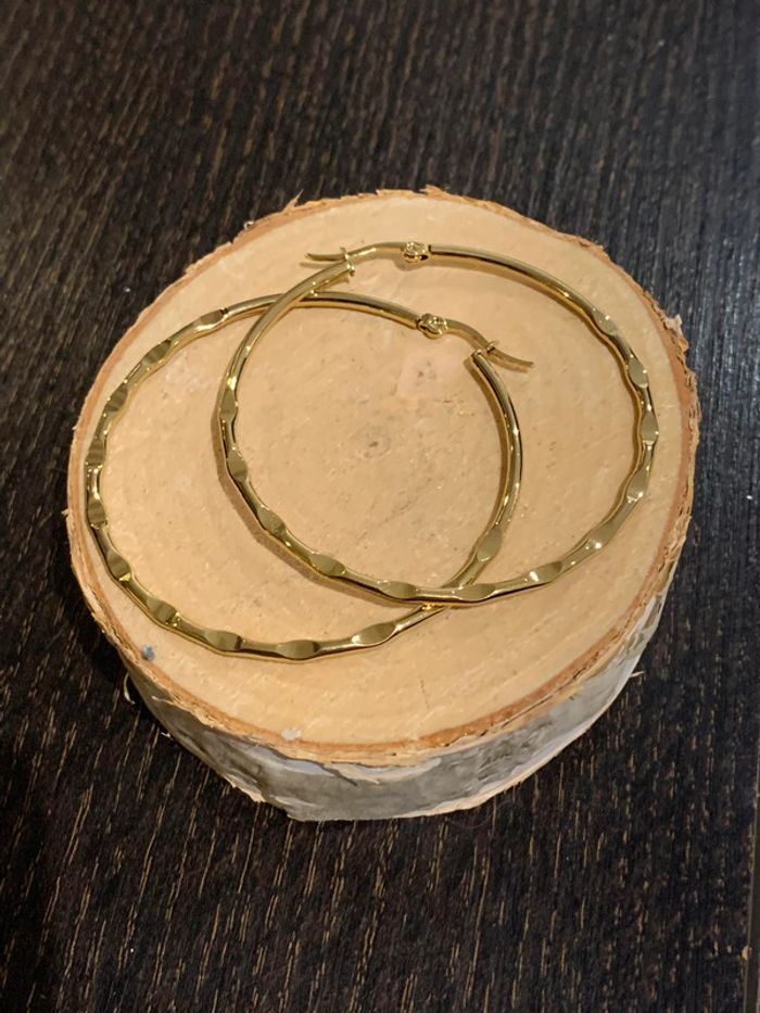 Boucles d'oreilles créole en acier inoxydable. Taille 5cm. Couleur : Doré. Vous souhaitez acheter en lot ? veuillez m'envoyer un message et je vous ferez une vente.