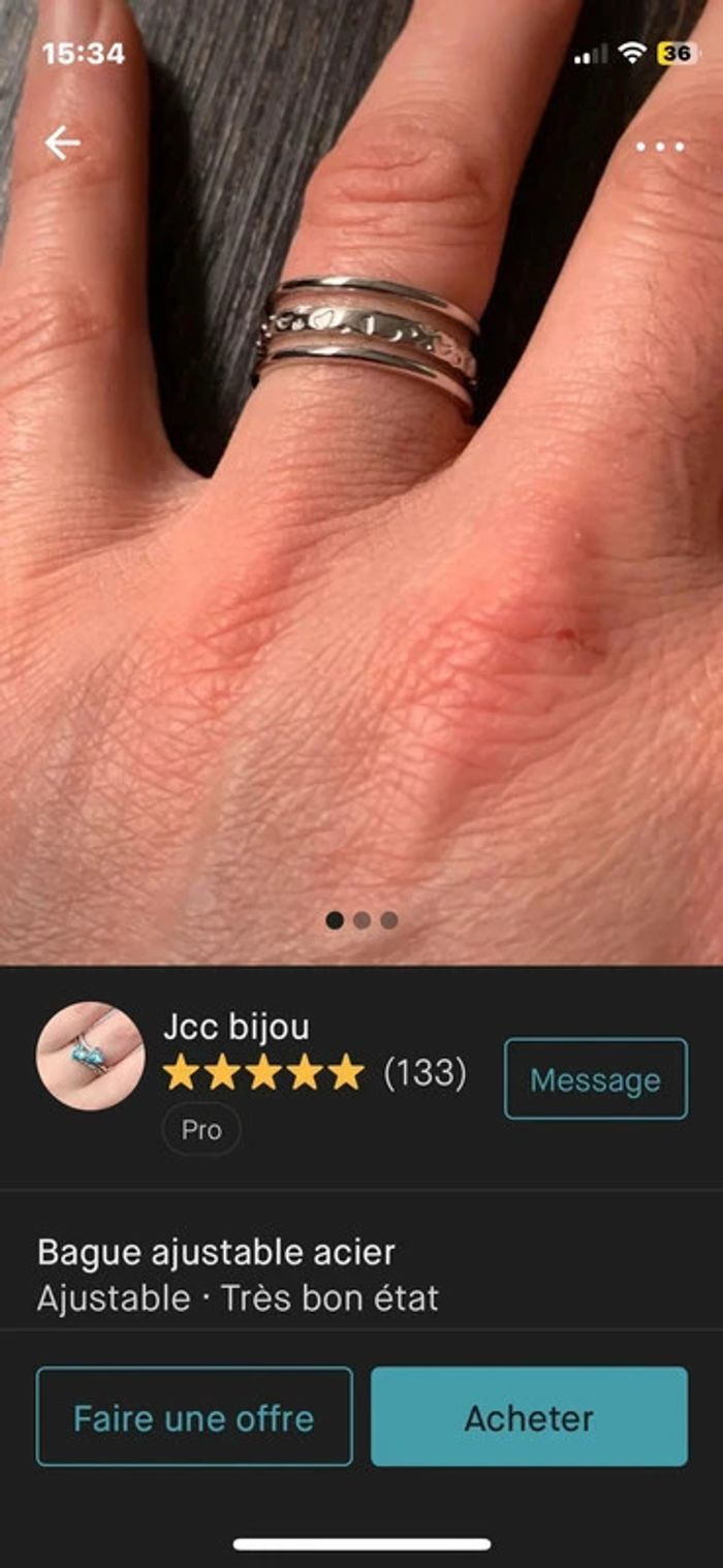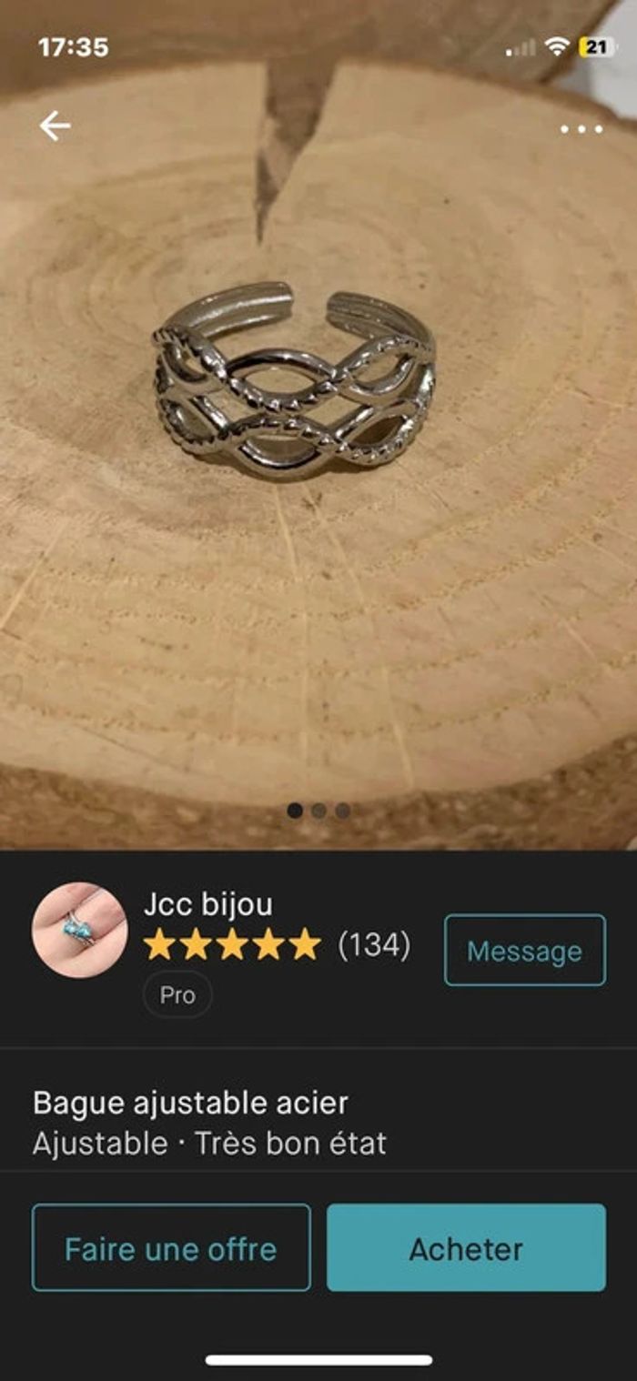 Bague ajustable en acier inoxydable. Couleurs argenté. 2 bagues.
