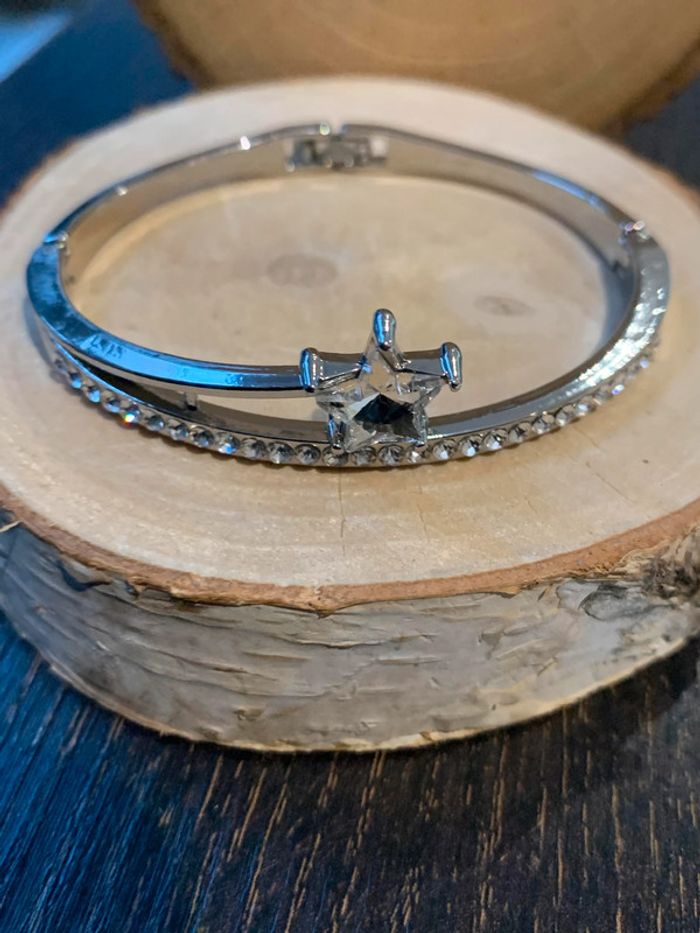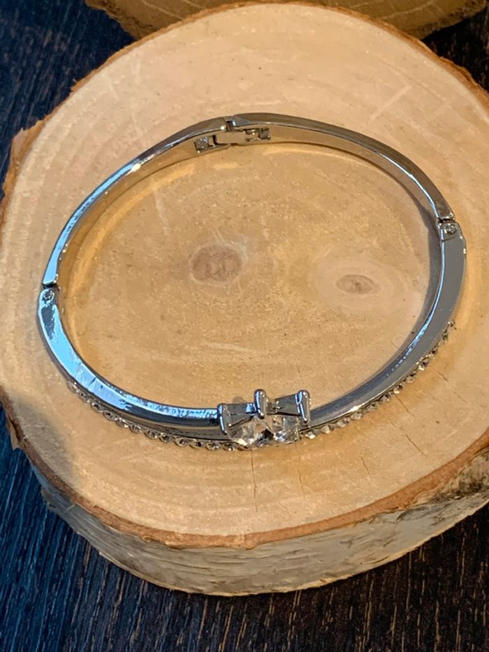 Bracelet jonc. Mélange de métal et acier. Par précaution évitez de mettre trop souvent ou trop longtemps dans l'eau. 5.7 cm de large (mesure intérieure). Couleur : Argenté. Vous souhaitez acheter en lot ? veuillez m'envoyer un message et je vous ferez une vente. Envoi rapide et soigné.