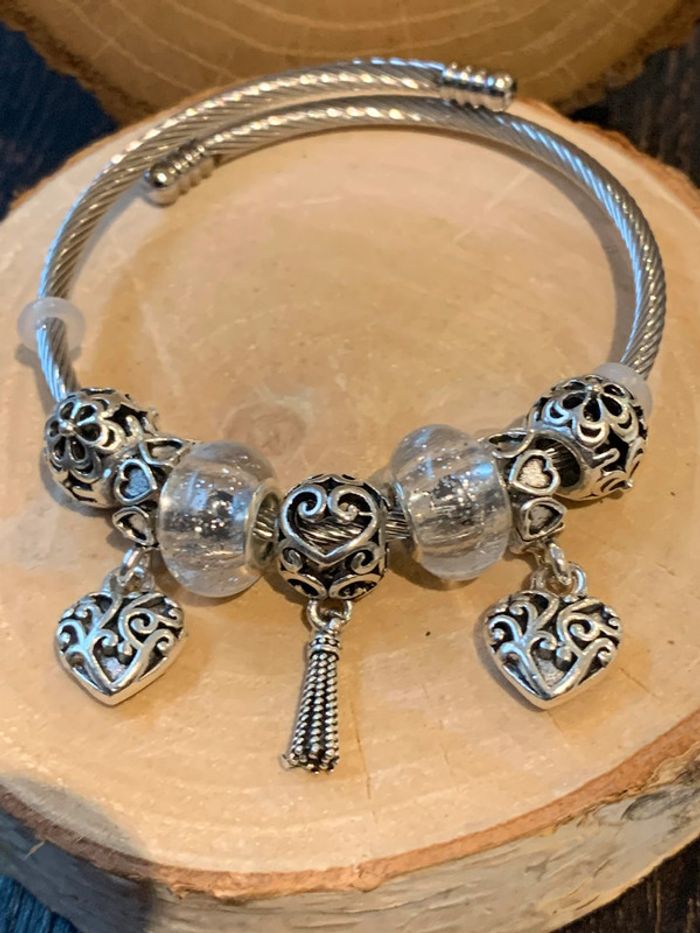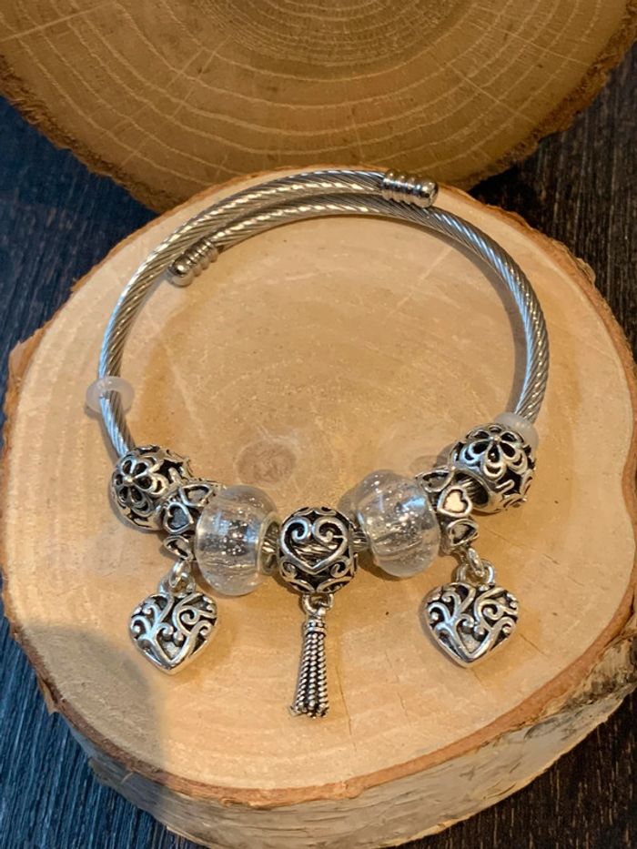 Bracelet jonc en acier inoxydable. Cœur, pierres. Couleur : Argenté. Vous souhaitez acheter en lot ? veuillez m'envoyer un message et je vous ferez une vente. Envoi rapide et soigné.