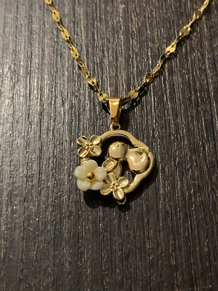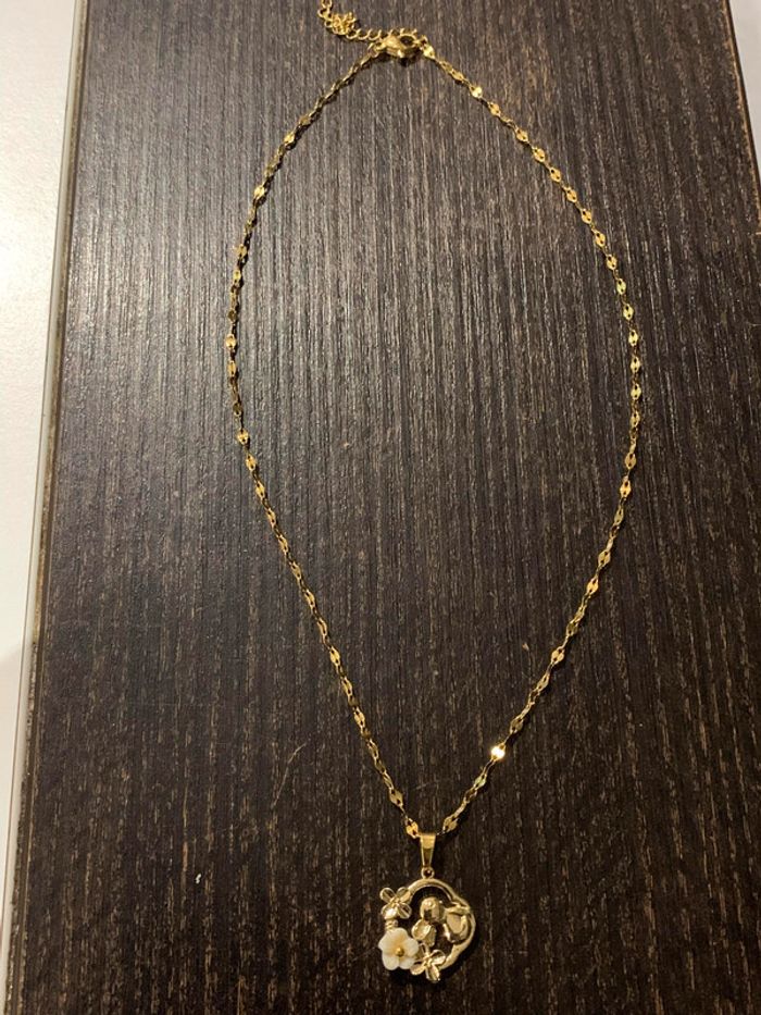 Chaîne fine avec pendentif en acier inoxydable. Longueur de chaîne 45 cm. Couleur doré, blanc.. Vous souhaitez acheter en lot ? veuillez m'envoyer un message et je vous ferez une vente. Envoi rapide et soigné.