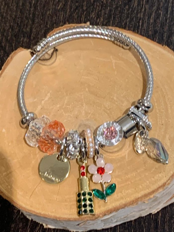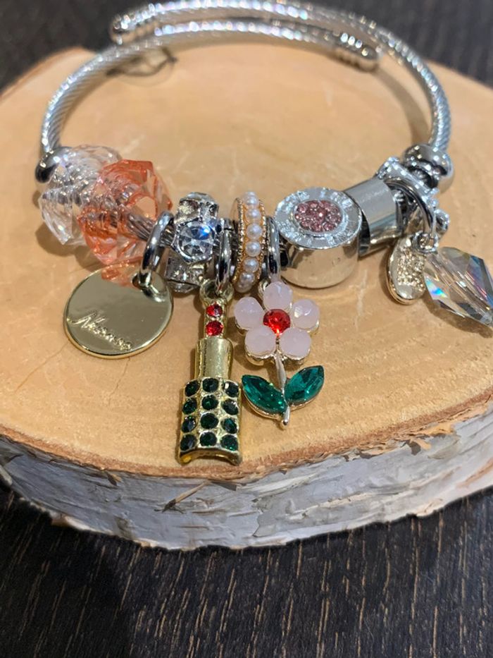 Bracelet jonc en acier inoxydable. Fleur, palette, pierre. Couleur : Argenté, rose. Vous souhaitez acheter en lot ? veuillez m'envoyer un message et je vous ferez une vente. Envoi rapide et soigné.