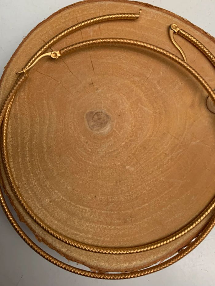 Boucles d'oreilles créoles en acier inoxydable. Couleurs: Dorée. Vous souhaitez acheter en lot ? veuillez m'envoyer un message et je vous ferez une vente. Envoi rapide et soigné.