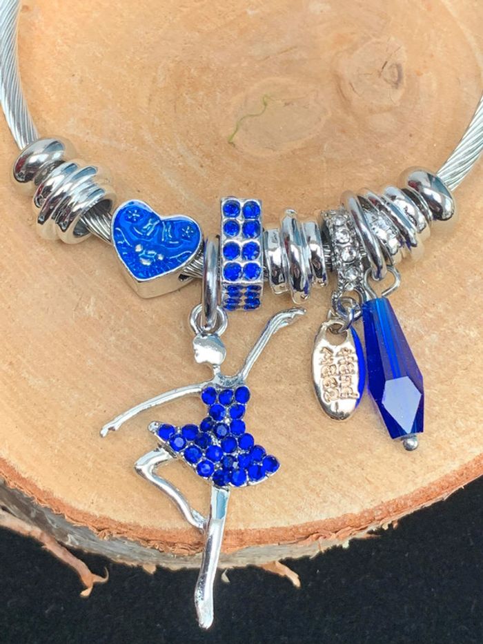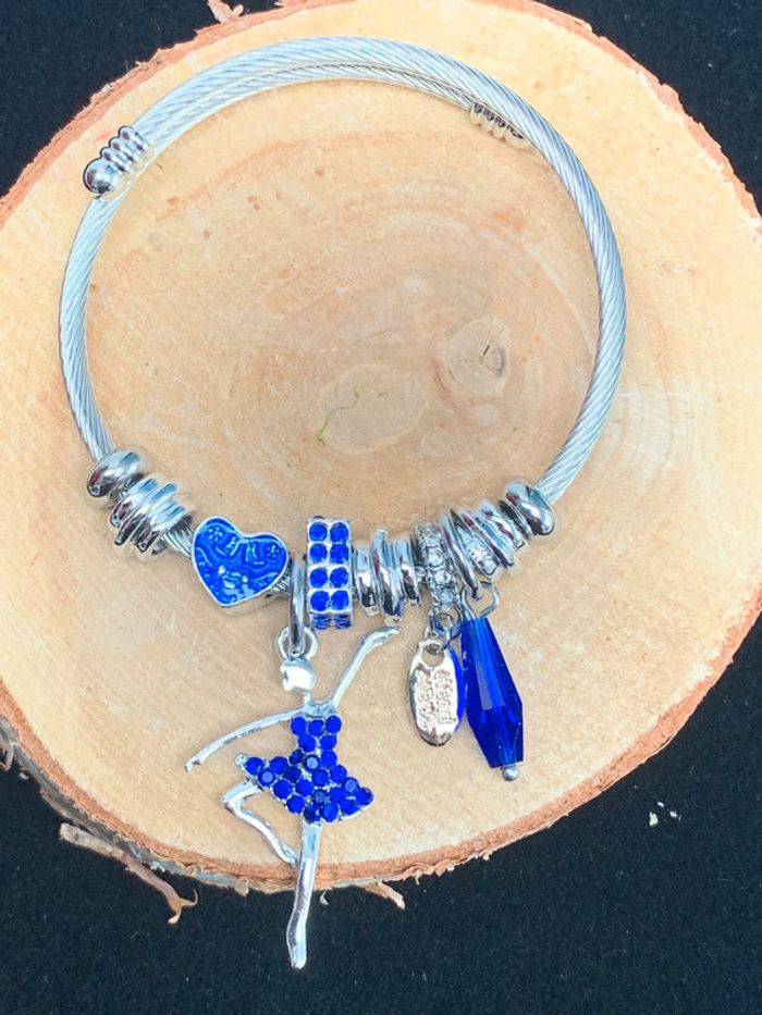 Bracelet jonc en acier inoxydable. Charms: Danseuse, pierre, palette. Couleur argenté/noire. Vous souhaitez acheter en lot ? veuillez m'envoyer un message et je vous ferez une vente. Envoi rapide et soigné.