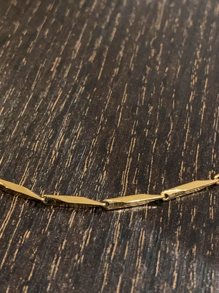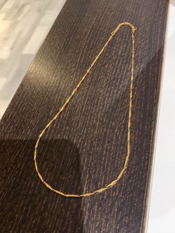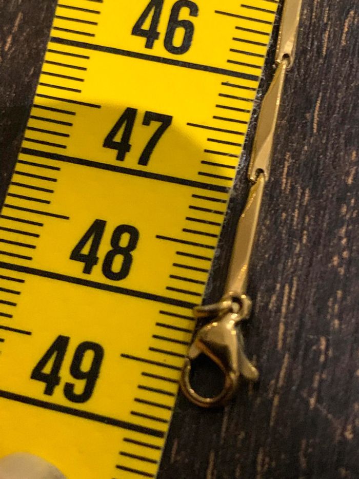 Chaîne fine en acier inoxydable. Longueur de chaîne 48.5 cm. Couleur doré. Vous souhaitez acheter en lot ? veuillez m'envoyer un message et je vous ferez une vente. Envoi rapide et soigné.