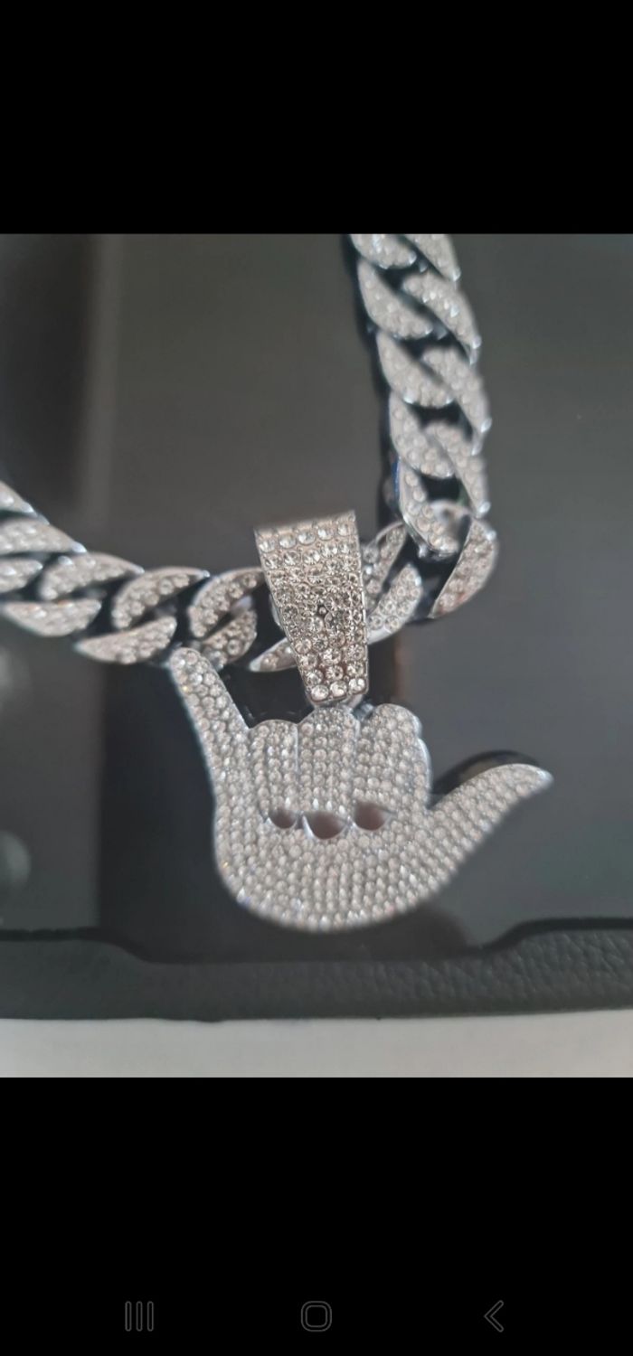 Collier rock hip hop acier strass
