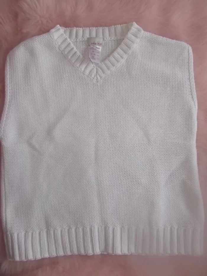 Pull blanc sans manche pour garçon Taille 138 cm / 10 ans De chez vertbaudet 100% Coton