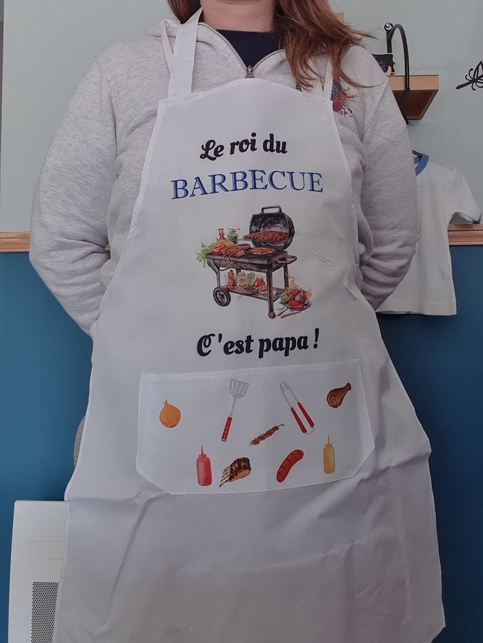 Tablier de cuisine personnalisable suivant vos envie. Thème barbecue 2 poche sur le devant 100% polyester effet lisse plastifier Privilégier shop2shop n'hésitez pas pour plus de renseignements