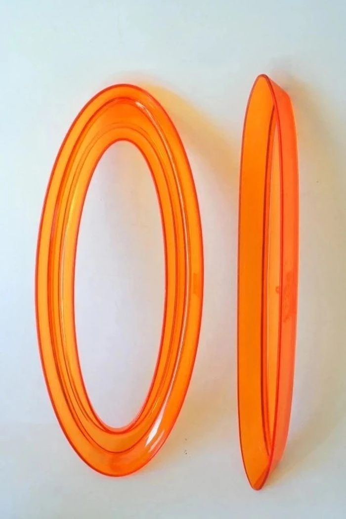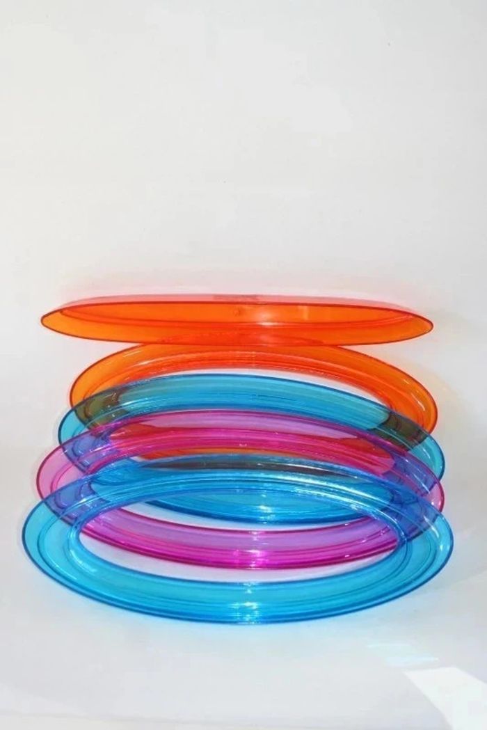 Lot de 5 plateaux apéritifs originaux en pvc transparent, 2 orange, 2 bleu, 1 rose, 33cm de long, celui en forme de barque a une fêlure sur le bout mais qui ne gêne en rien l'utilisation, 540g