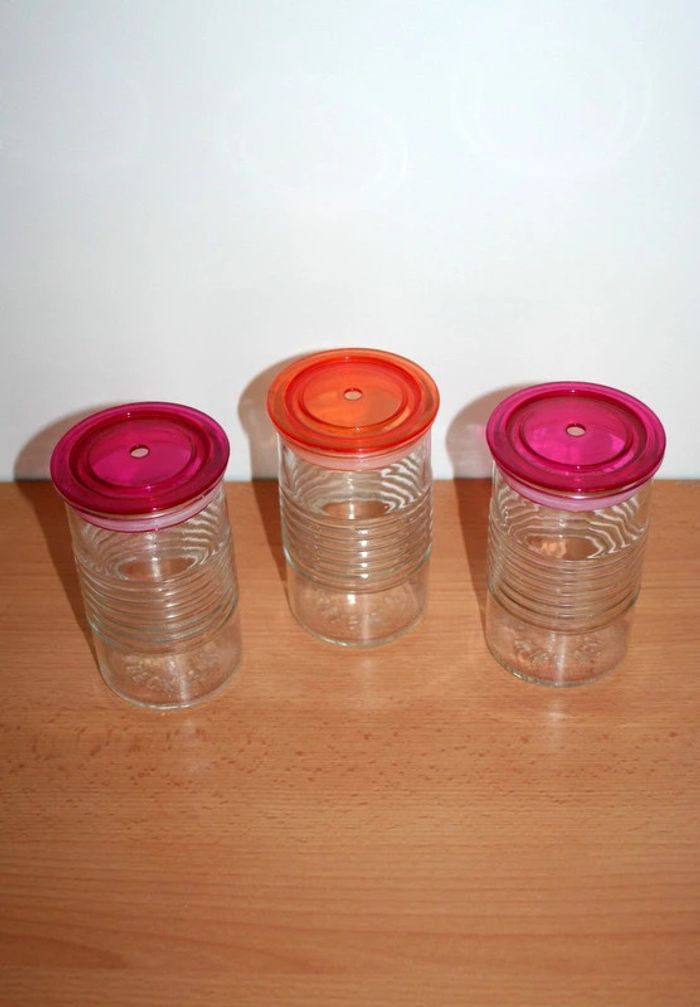 Lot de 3 verres avec couvercle hermétique et trou pour la paille 13.5cm haut - photo numéro 1